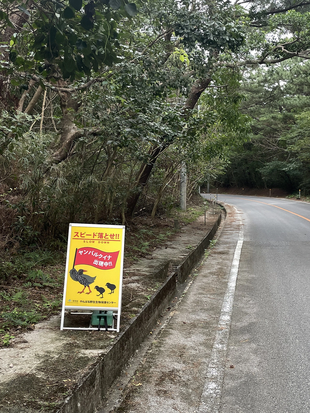 도로에는 ‘얀바루쿠이나(흰눈썹뜸부기)’라고 불리는, 이곳 오키나와에서만 서식한다는 일본 천연기념물 주의문이 많았다. 거의 100미터 간격마다 얀바루쿠이나를 조심하라는 주의문이 설치되어 있었다. 불행하게도 도로를 달리는 내내 주의문 개수와는 별개로 얀바루쿠이나는 단 한 마리도 보지 못했다. 얀바루쿠이나는 그렇게 한국의 고라니만큼 자주 무단횡단을 하지 않는 듯했다.
