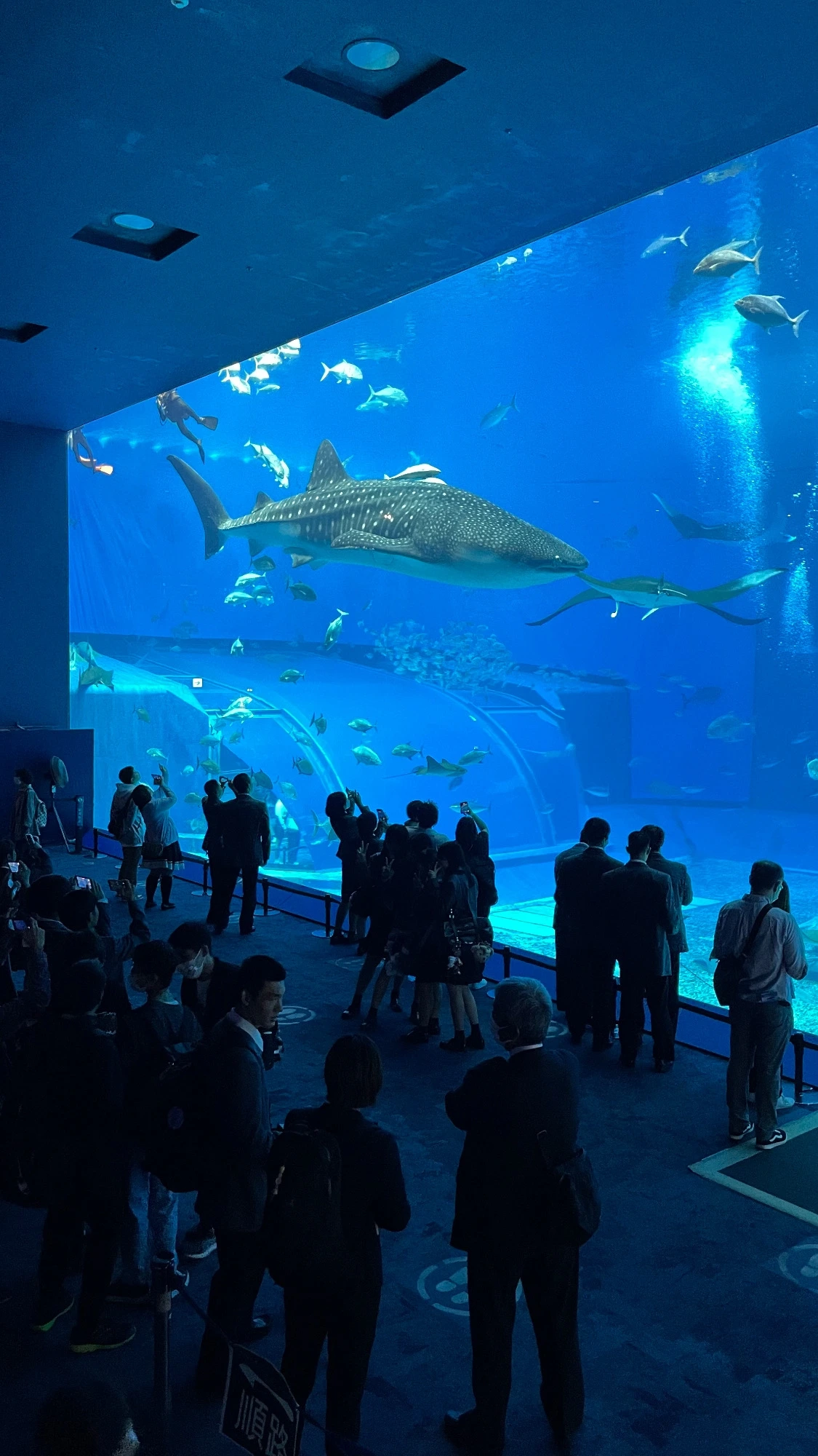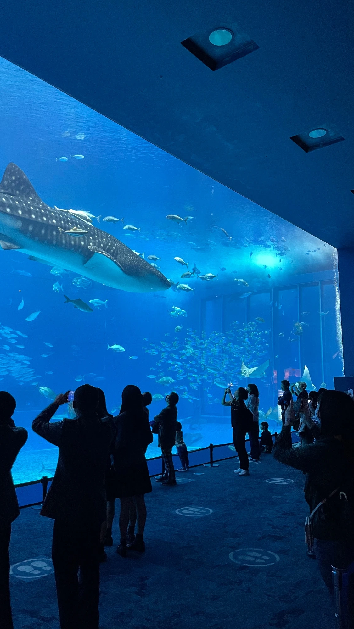 개관 전 도착해 주변을 둘러보다가 8시 30분이 되자마자 입장했다. 시간에 쫓겨 유리창 너머 유영하는 물고기들을 대충 눈으로 훑어보며 빠른 걸음으로 수족관을 통과했다. 가이유칸보다 어종 자체는 다양하지 않은 것 같았다. 거의 15분 만에 이곳의 하이라이트라고 할 수 있는 고래상어 코너에 도착했다. 이전까지 보고 온 수족관도 오로지 이 한 코너만을 위해서 만들어진 애피타이저 같았다.