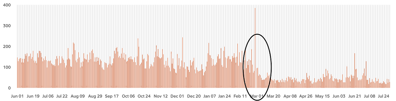 하지만 그로 인해, 내 욕심 때문에 거꾸로 알고리즘이 무참히 박살이 나고 말았다. 그래프에 보이는 것처럼, 구입하자마자 가계정으로 인한 음악 플레이 수는 한 번에 급격히 늘었다가도, 이후 새로 추천으로 유입되는 사람들의 수가 엄청나게 줄어든 것이다.