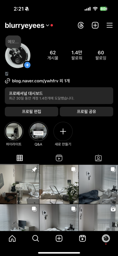 내가 내 방 사진을 올리던 인테리어 인스타그램은, 단 한 번도 팔로워를 인위적으로 늘리려고 무차별적으로 팔로잉을 걸거나 일부러 다른 사람의 사진에 좋아요를 누른 적이 없었다. 협찬을 받으려고, 돈벌이가 될 것 같아서, 인기가 많아지고 싶다는 이유가 아닌 좋아서 시작한 계정이었기 때문이다.