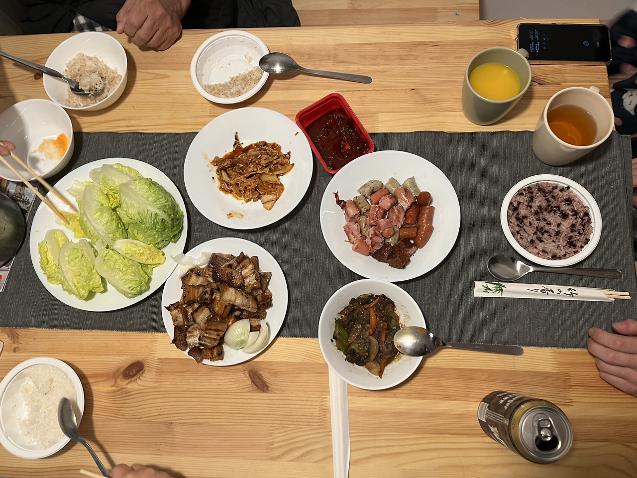 소중하게 느껴지지 않는것처럼.. 그래서 2023.12.24일 나는 최대인파 기록을 연일 갱신하는 슈테판-그라벤거리-홉프부르크 왕궁-칼츠플라츠를 지칠 줄 모르고 걸어다녔다. 그리고 지친 몸으로 한국인답게 숙소에서 삼겹살을 굽고 김치까지 구워서 맛있게 이브 파티를 했다. 그리고 필수!! 이 냄새에 익숙지 않은 다음 여행객을 위해 1시간 환기합시다~