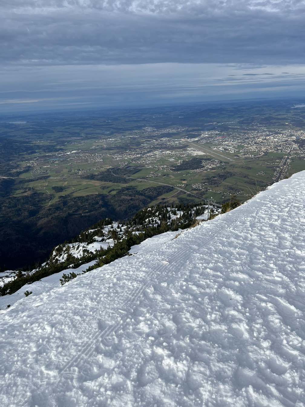 일전의 운터베르크는 나와 조카 둘이 전세를 낸 듯 아무도 없는 눈밭에서 산아래의 운무와 눈덮힌 도시를 맘껏 감상할 수 있었다. 그 기억만으로 다시 찾은 운터베르크. 하지만 그때와 다른 상황과 날씨를 계산에 넣지 못한 탓에 아버지와 나, 그리고 조카들은 만원케이블카에 탑승할 수 밖에. 출근시간 지하철 9호선이 부럽지 않은 빡빡한 케이블카를 십오분 정도 타고 올라오니 그제서야 눈밭이다. 올라오는 길이 눈산이었으면 얼마나 좋을까 싶었다. 케이블카에서 시달린 아버지는 라운지 밖은 엄두도 못내고 아버지를 보호하는 나도 실컷 눈밭을 즐기진 못했다. 하지만 답답한 구조물이나 장식하나 없는 오롯 산정상의 눈부신 눈밭뿐인 운터베르크를 다시 눈에 담는 것만으로도 좋았다. 많은 관광객들이 운터베르크의 길을 닦다 작고하신 분들을 기념하는 일종의 랜드마크인 십자가를 향해 눈밭을 오른다. (이렇게 운터베르크를 감상하게 해준 그 분들을 애도하는 바) 나도 십자가에도 가보고 싶고, 아무도 밟지 않은 눈밭에 발자국을 남기고 싶었다. 하지만 보고 듣고 밟고 느끼는 여러가지의 감각보다도 단순한 한가지 감각으로라도 감동인 순간이 있다. 오늘은 운터베르크 정상에서 하늘을 좀 더 가까이 볼 수 있다는 것만으로도 대만족이다.