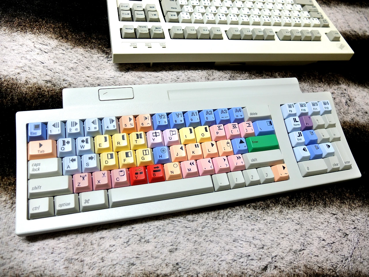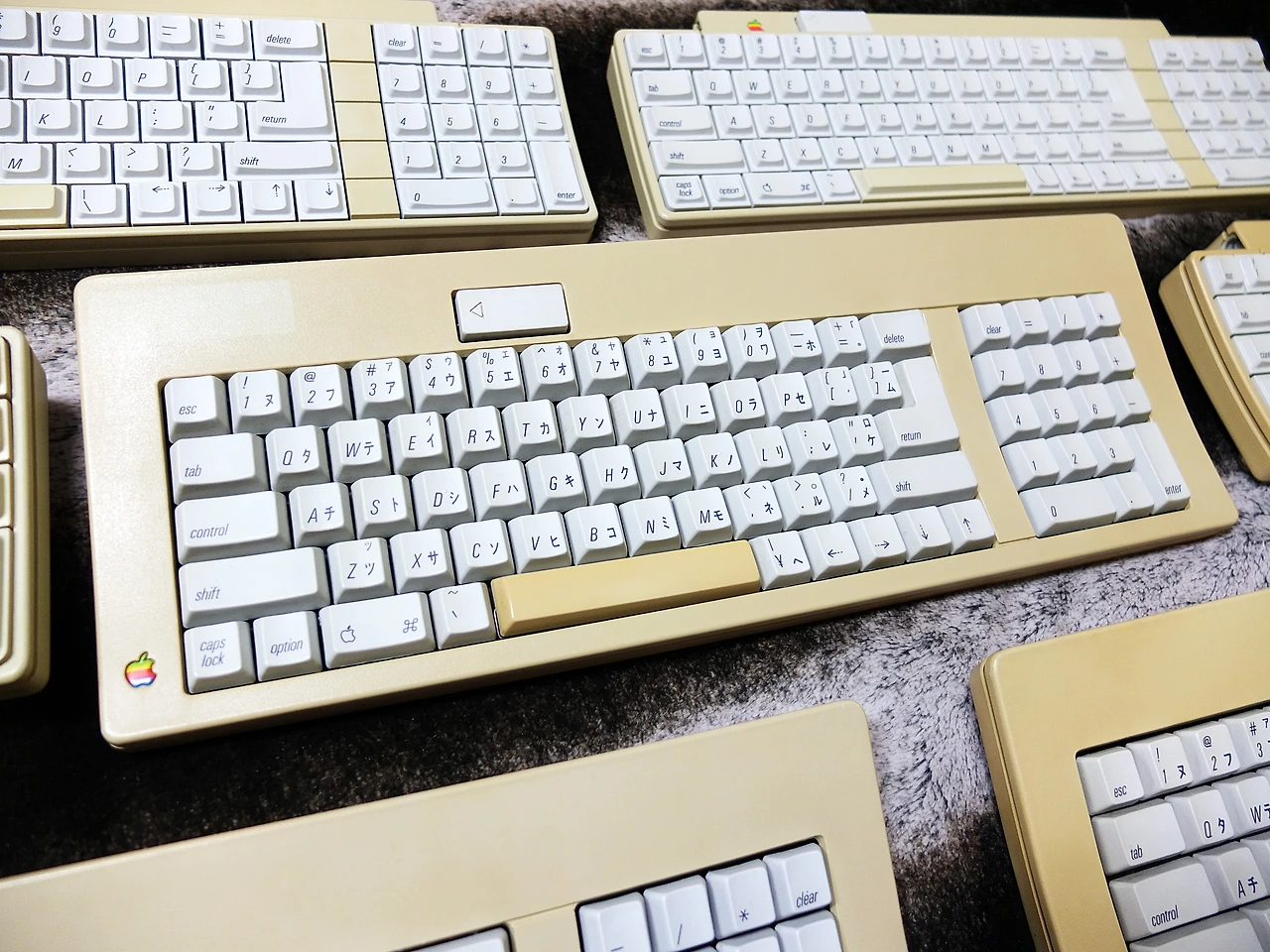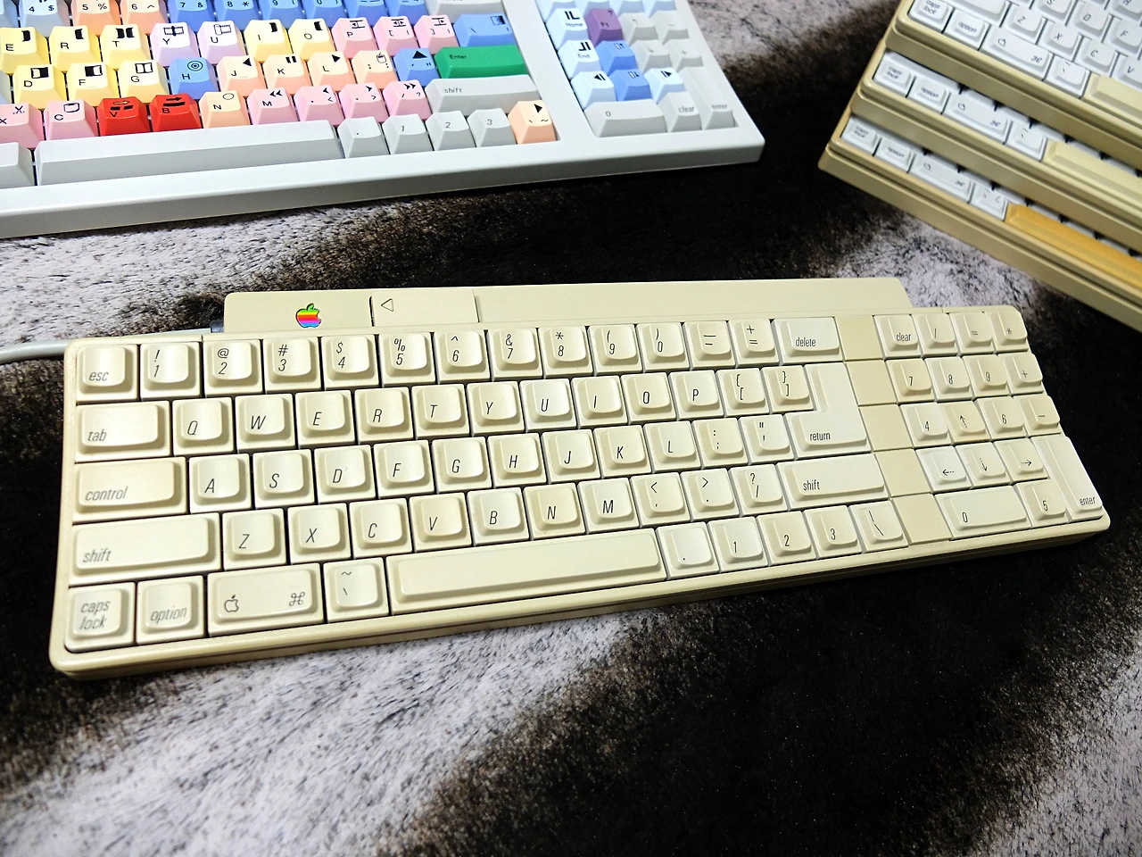 스탠다드의 매력은 뒷면에 주름진 세로 줄무늬라고 생각하지만, 좌측의 레인보우 애플 로고와 여백으로 둘러진 상부 하우징에서 느껴지는 빈티지스러움이 있다고 생각합니다. 아마 창고를 잘 뒤져보면 몇 대 더 있겠지만, 제가 소유한 스탠다드는 모두 중고라서 기회가 된다면 다시 한번 신품급을 만져보고 싶습니다. 스탠다드는 구입한 지역에 따라서 레이아웃도 조금 달라지고, 각인도 몇 가지 있어서 모으는 재미가 있는 키보드라고 생각합니다.