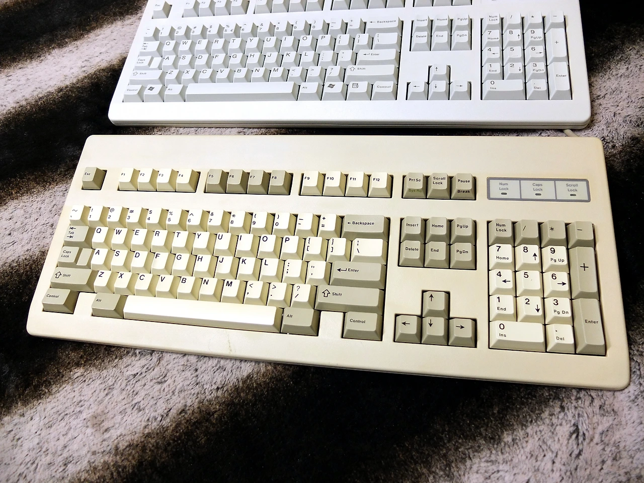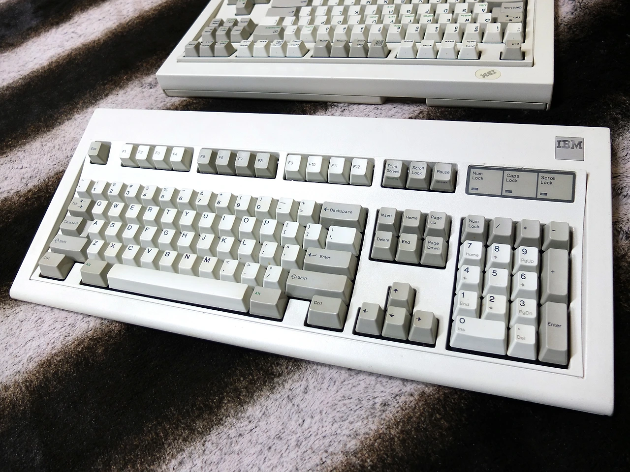 그레이로고, 블루로고, 영국산, 미국산, 멕시코산, 렉사마크, 유니콤프등 여러 모델엠을 모으고 싶었던 시기가 있었지만, 어차피 메인으로 사용하는 모델엠은 스페이스 세이버라서 스탠다드한 모델엠은 이거 하나 남았습니다. 모델엠은 하우징이 튼튼하고 다른 빈티지 키보드에 비하면 변색도 적은 편이라, 오랜 기간 소장해도 관리하기 편하다고 느낍니다. 소장용으로 Model F의 XT 5150이나 AT 5170도 갖고 싶지만, 이제는 기회를 다 놓쳐버려서 앞으로는 불가능하지 않을까 싶습니다.