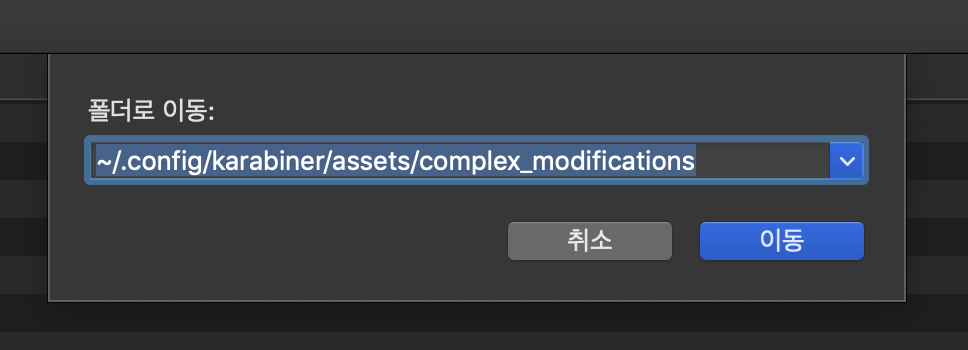 추가1) 파인더에서 [command + shift + g] 단축키를 통해서 카라비너에 추가되어 있는 json파일을 관리할 수 있습니다.