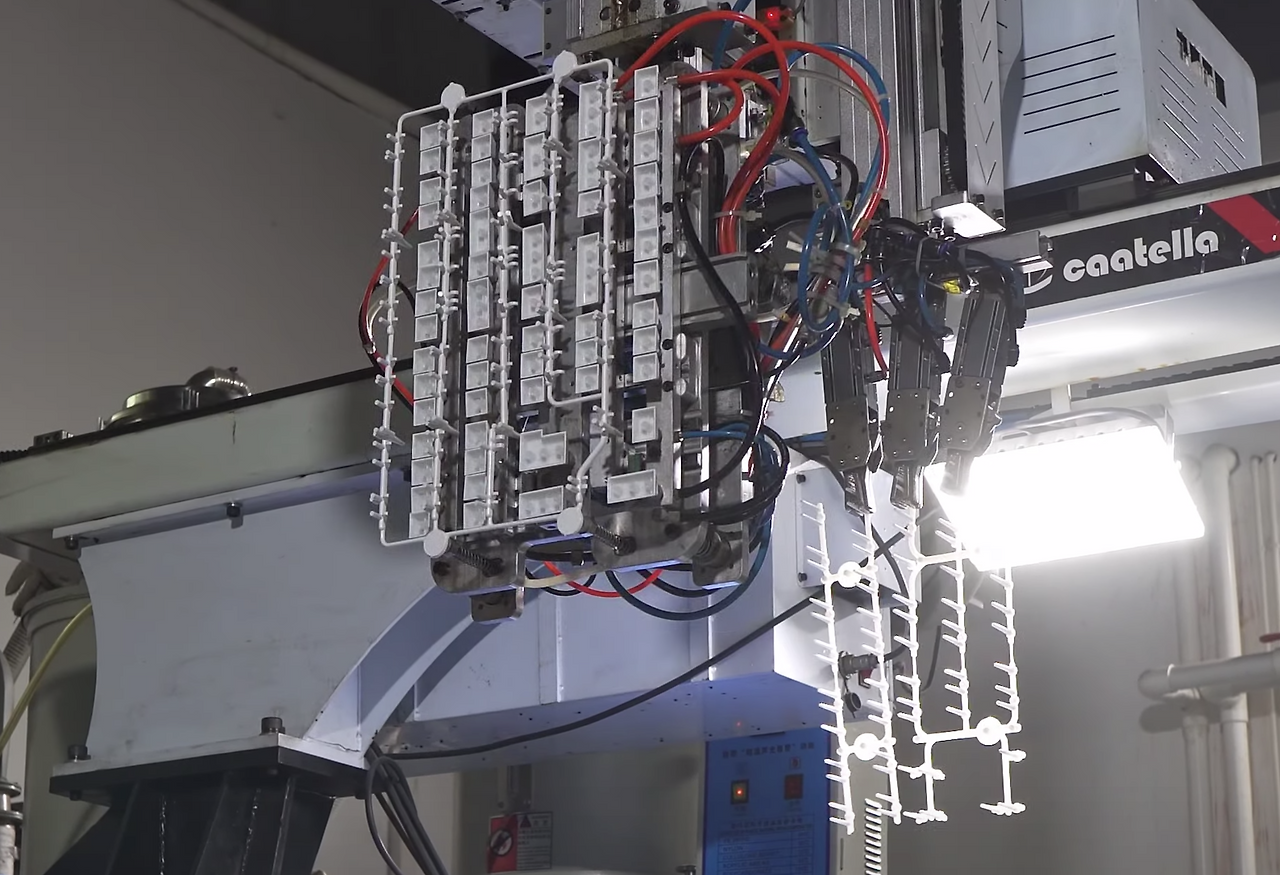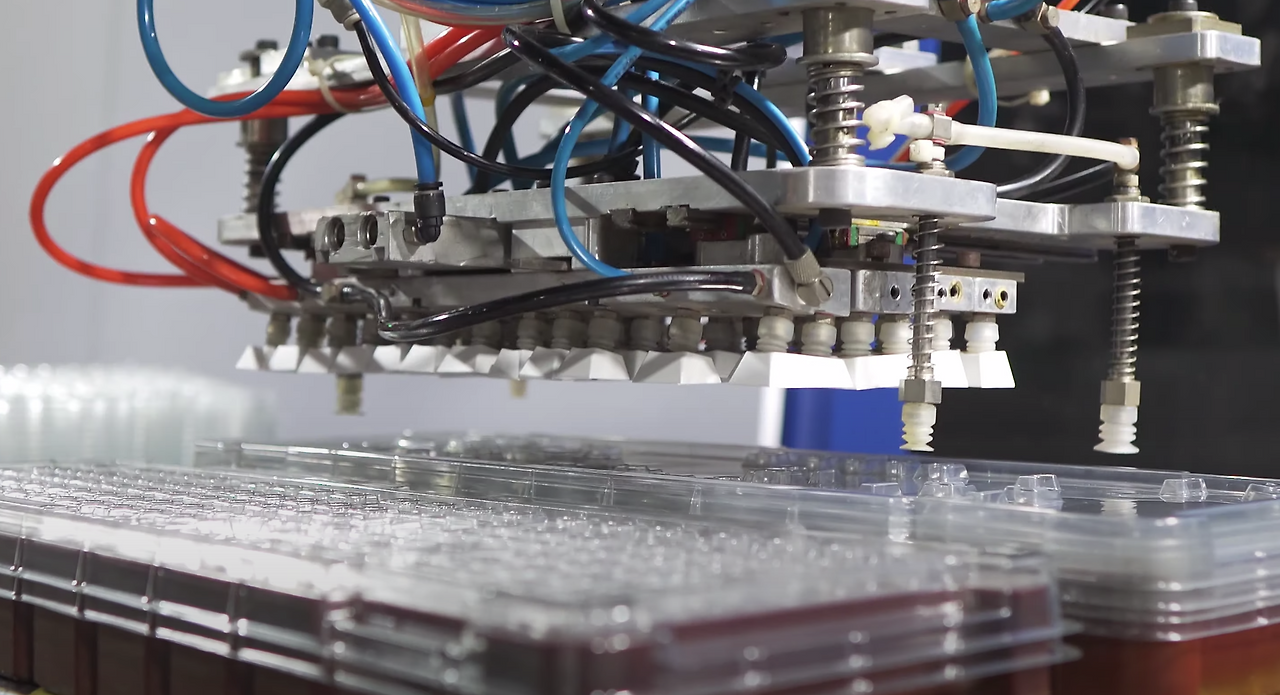 이후 기계를 활용하여 포장을 위해서 키캡을 트레이로 옮깁니다.