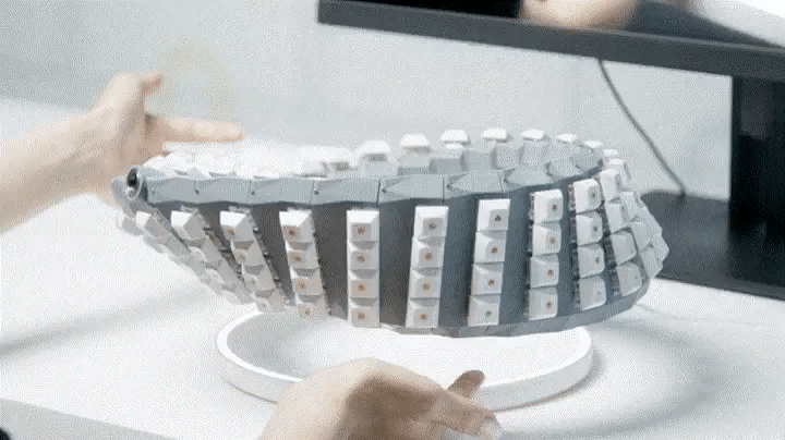 양면 8개가 들어있는 스위치 모듈을 26개 붙여서 제작한 "양면으로 사용하는 키보드"입니다.