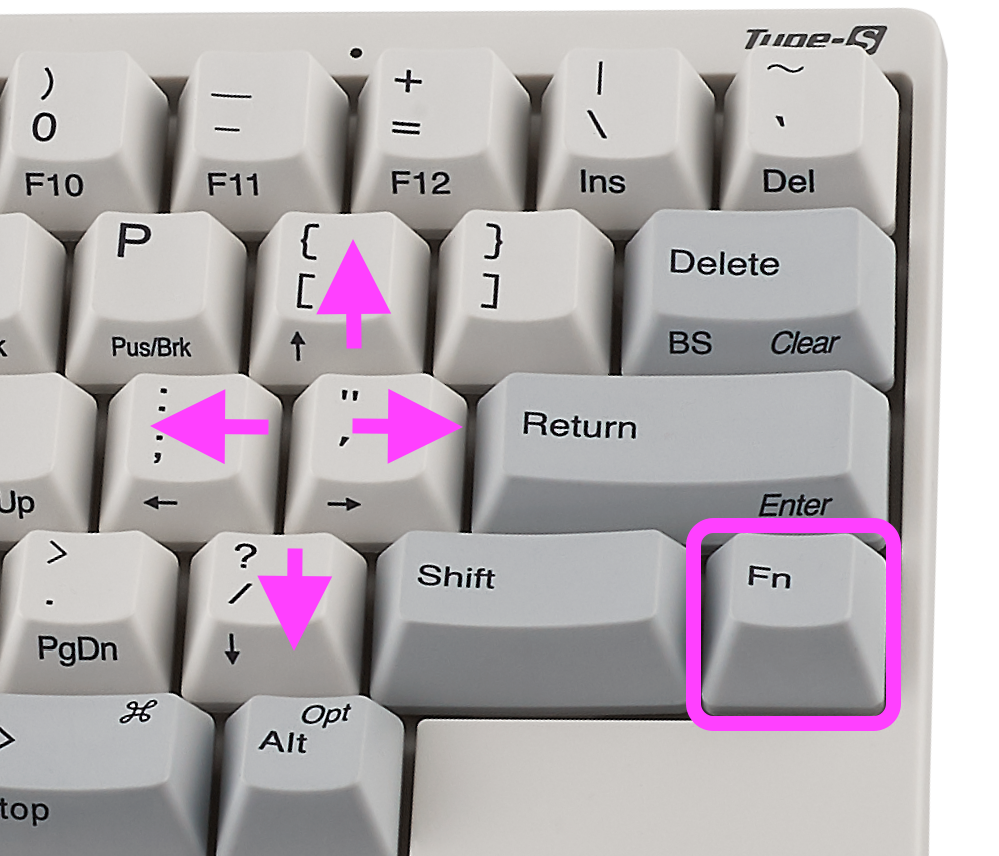 해피해킹에는 우측 시프트(Shift)키의 오른쪽에 FN키가 있습니다. (Function Key)
