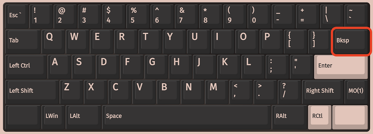 해피해킹의 BS(Backspace)키는 엔터키의 위에 있는 1.5U 사이즈의 키를 주로 활용합니다.