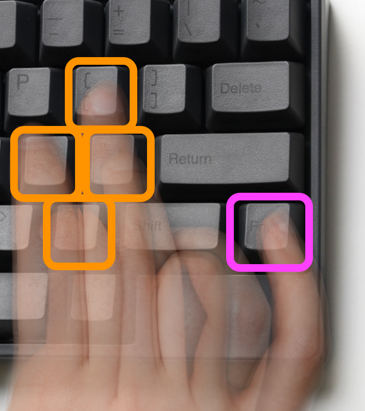 Fn키를 오른손 새끼손가락으로 누른 상태에서, 검지와 중지는 ;:키와 '"키에 위치하게 되고 방향키 좌우로 사용하게 됩니다. 자연스럽게 위 아래로 위치하는 [{키와 /?키는 방향키 상하로 이용하시면 됩니다.