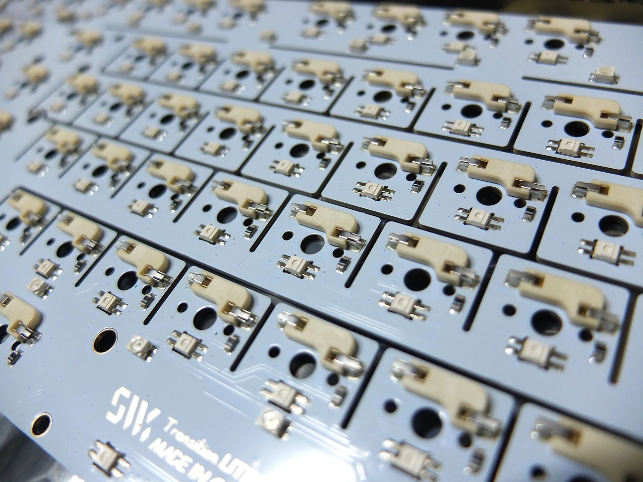 이제 스위치를 장착해야 합니다. 윤활에 익숙하다면 자신만의 스타일로 윤활하여 사용해도 좋고, 그렇지 않다면 윤활이 되어있는 특주 스위치를 많이 이용합니다. 물론 특주 스위치들은 제조사 특유의 공장윤활이 되어 있어서, 선호하지 않는 분들도 많습니다.