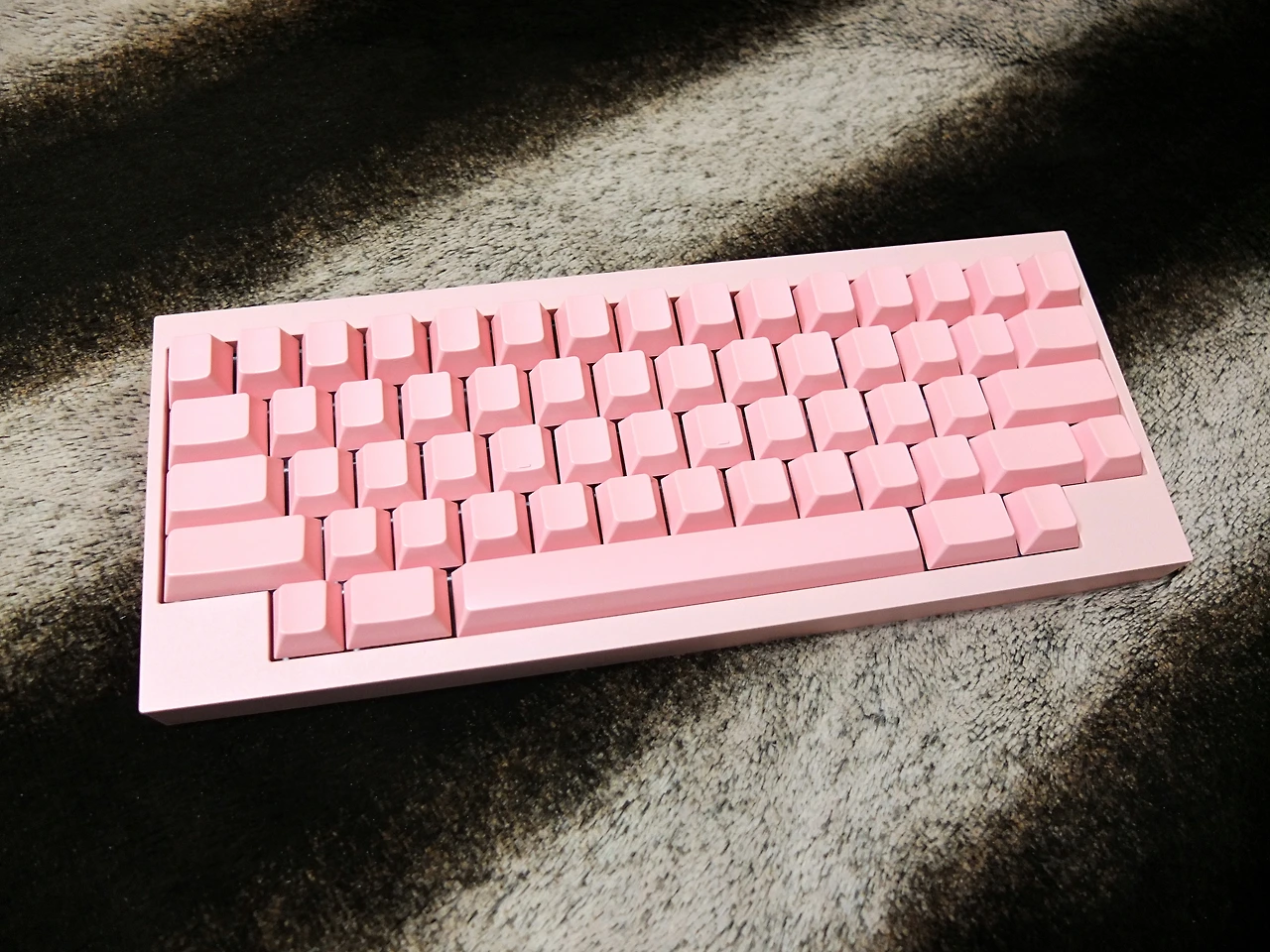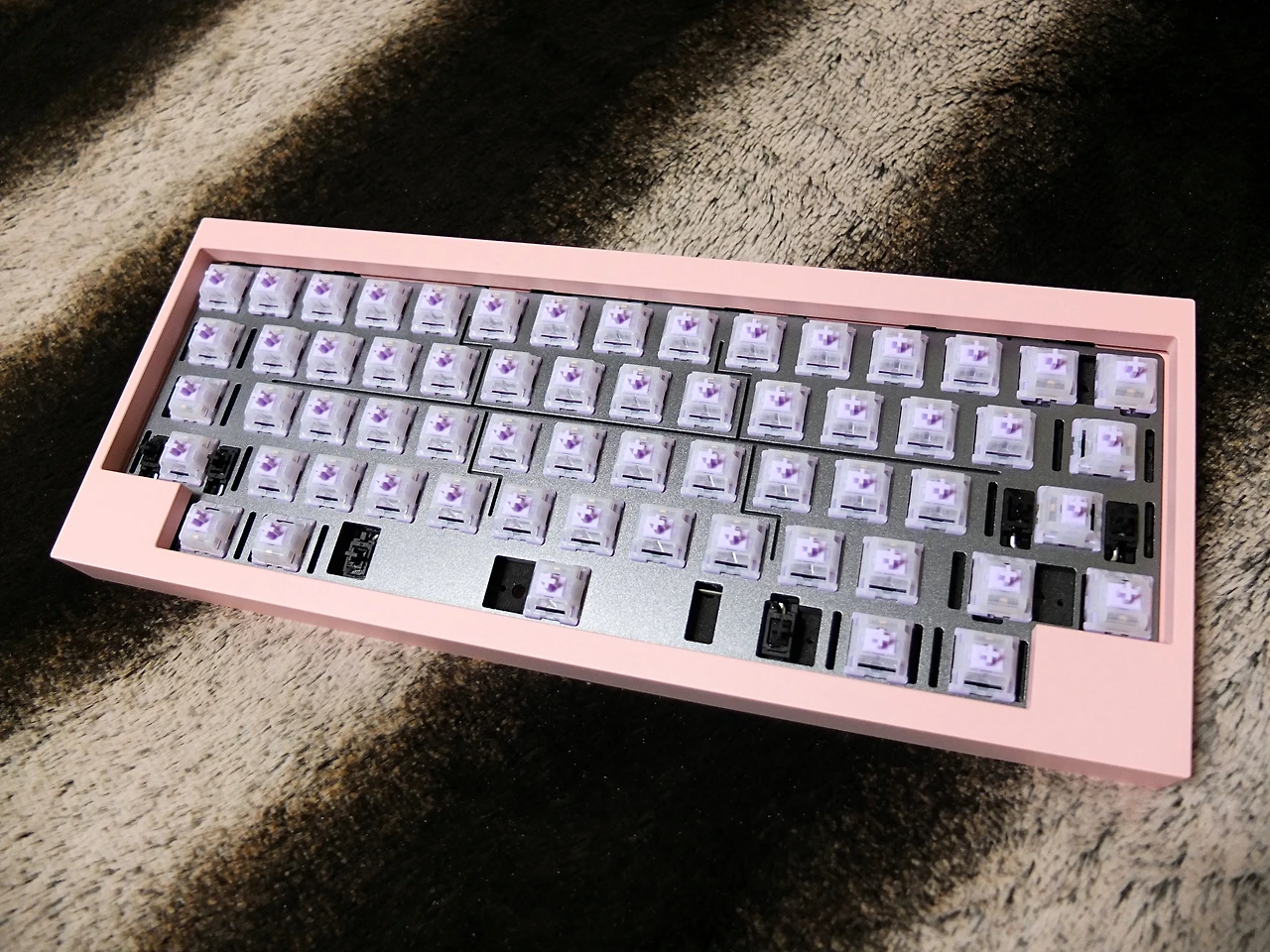 연한 핑크색 하우징과의 색조합은 전체적으로 비슷한 톤의 느낌이 들어서, 눈으로 보기에도 예쁘고 꽤 마음에 듭니다. 회색~은색에 가까운 알루미늄 보강판이 스위치 사이에서 구분되는 기분도 들었습니다.