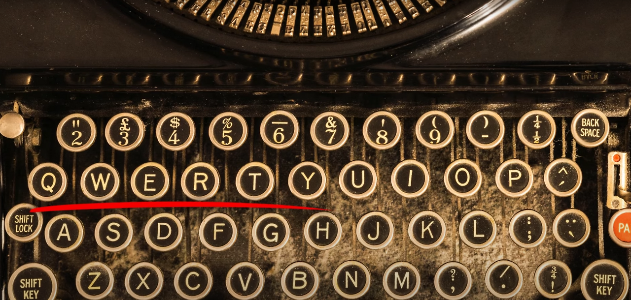 키보드에서 자주 보이는 QWERTY 배열은 기계식 타자기를 설계하던 크리스토퍼 숄즈(Christopher Sholes)가 타이핑 충돌을 줄이기 위해서 알파벳을 분산한 결과물입니다. 그리고 타자기의 기계적 한계 때문에 일부러 느리게 입력하게 만든 비효율적인 배열이기도 했습니다.