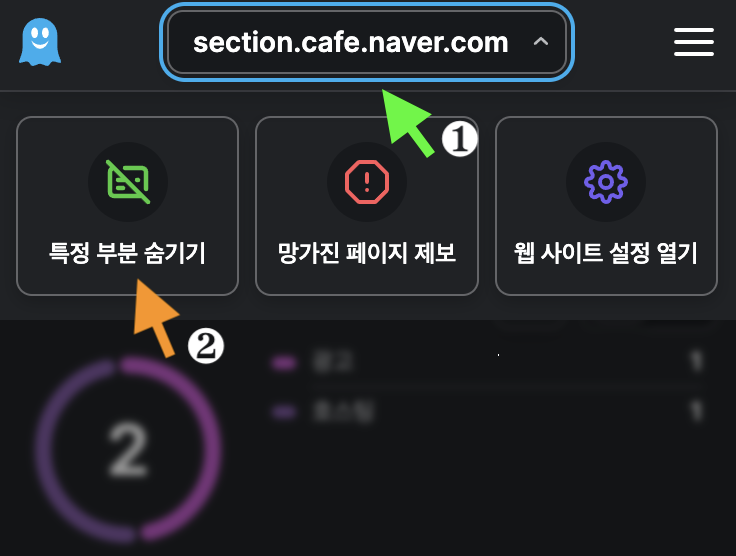 광고 필터에서 자동으로 제거하지 못하는 커뮤니티 직광고는 "특정 부분 숨기기"를 활용하면 좋습니다.