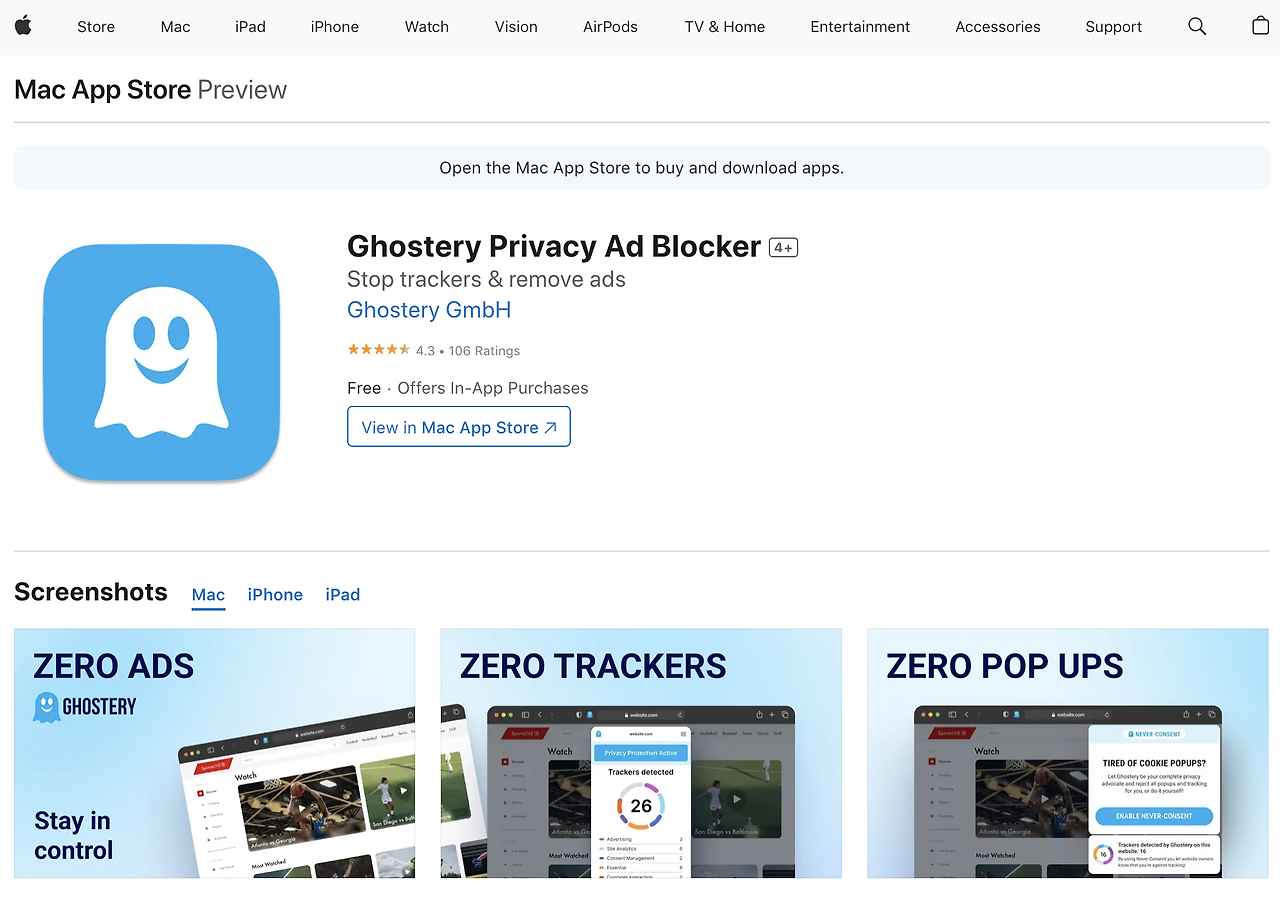 뮤블록이나 애드블록을 대체할만한 광고차단기는 계속 찾고 있지만, 당분간은 고스트리를 사용하지 않을까 싶습니다. Safari 버전은 애플 앱스토어에 등록되어 있습니다. (*무료, 추가 결재나 광고 없음)