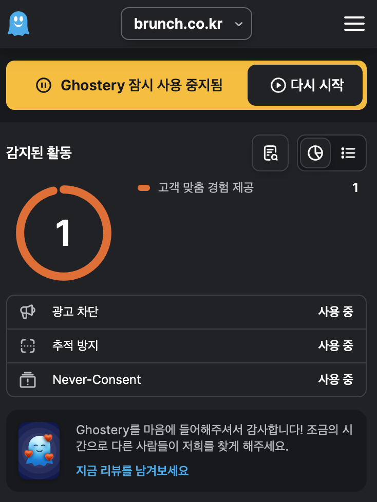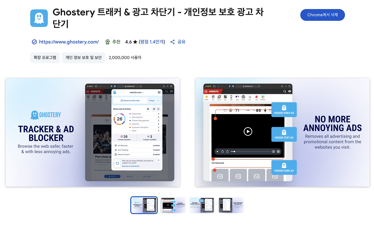 Ghostery는 예전에 한번 정도는 써봤지만, 처음부터 인기가 있던 확장 프로그램은 아니었습니다.