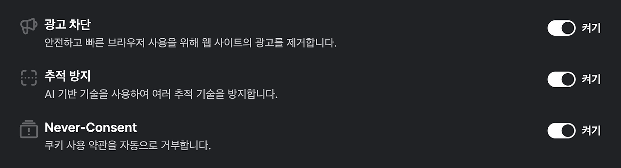 추적 방지는 물론이고, 기존에 쿠키 사용 여부를 묻는 팝업창이 신경 쓰였다면 꼭 써보시길 바랍니다.