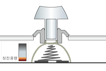 정전용량 무접점을 간단히 설명하면, 키를 누를 때 증가하는 전기용량으로 인식하는 방식입니다.