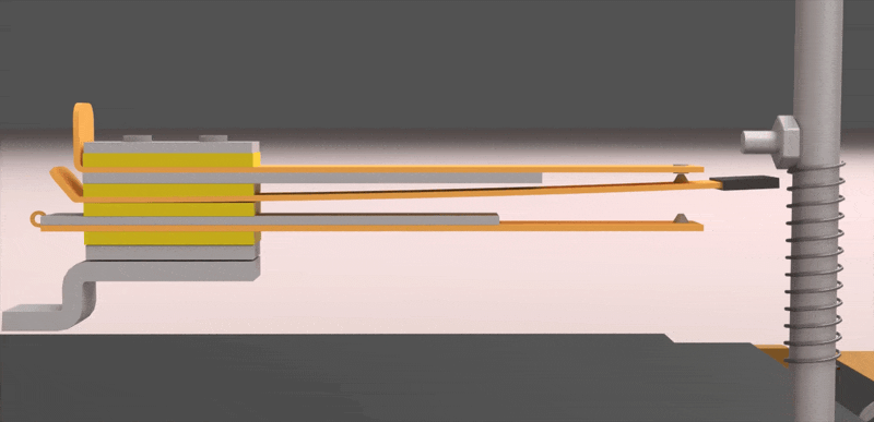 문자열 상단은 타자기처럼 스프링을 늘려서 사용하는 인장 코일 스프링, 중단과 하단은 키보드처럼 스프링을 눌러서 사용하는 압축 코일 스프링으로 구성되어 있습니다. 기계식 키보드처럼 전부 동일한 스프링을 사용하면 좋았겠지만, 그러지 못했던 이유는 하단 접점부의 설계 방식과 전체적으로 좁은 내부 공간 때문입니다.