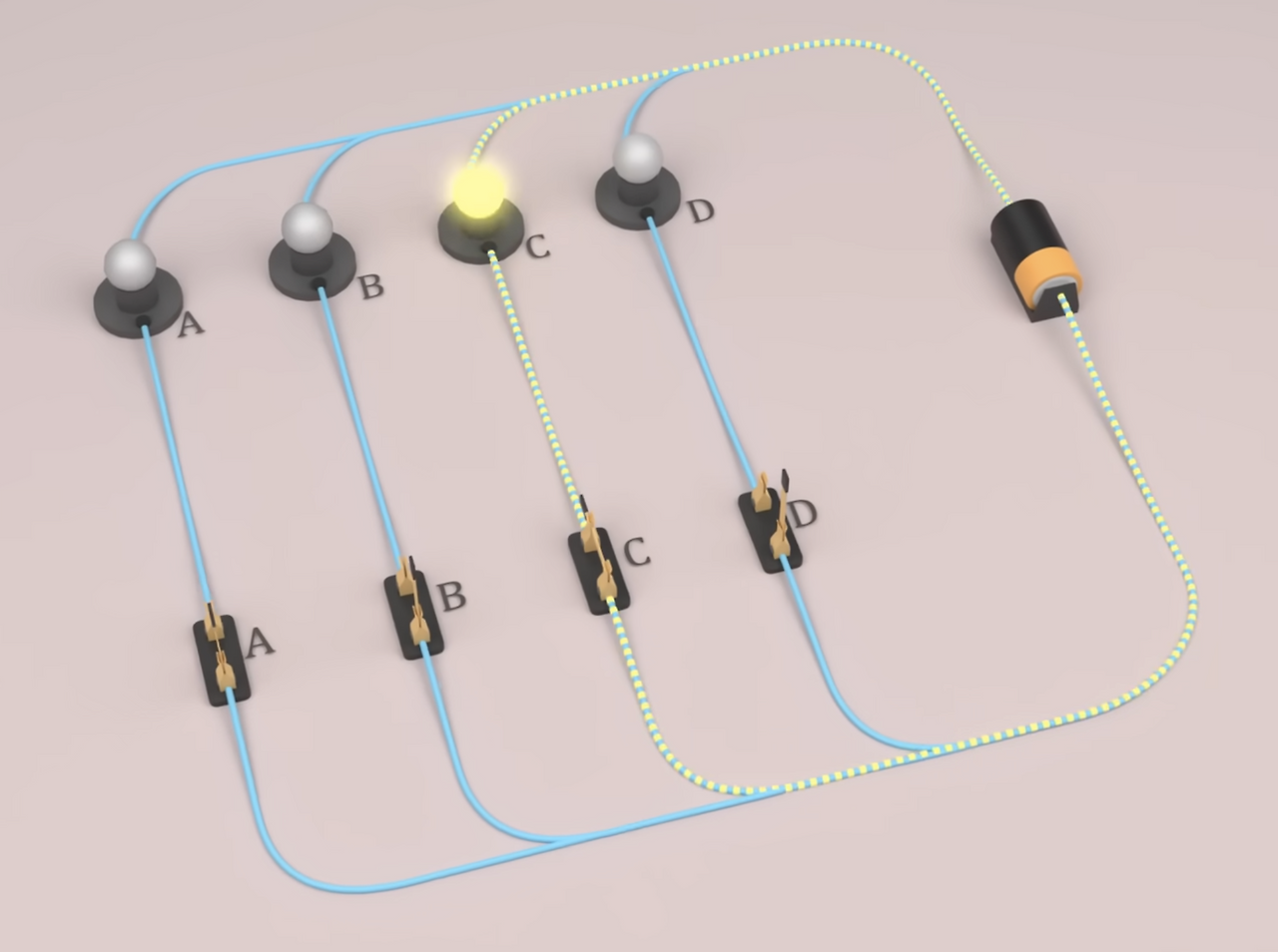 대부분의 키보드는 초등학교 시절에 배웠던 건전지와 꼬마전구, 그리고 스위치의 작동 원리를 상상하면 쉽습니다. 회로가 이어지면 전구에 불이 켜지고, 회로가 끊어지면 꺼집니다. 키보드의 원리도 단순하게 생각하면 비슷합니다. 키를 누르면 신호가 이어지며 문자가 입력됩니다. 물론 키보드는 러버돔이나 스프링을 내장하고 있기 때문에, 푸시 버튼 스위치로 따로 언급되기도 합니다.