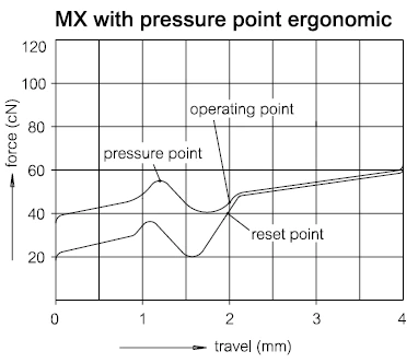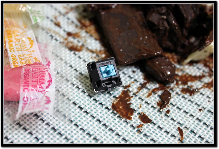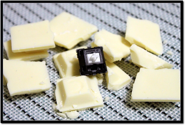 스위치 내부의 슬라이더 모양도 계단형으로 생겨서, 보편적으로 느끼는 키감이 초콜릿을 칼로 절단할때 생기는 굴곡을 연상 시킵니다.