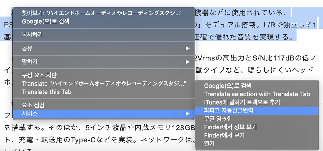 서비스 메뉴로 등록돼서 다양한 환경에서 웹번역을 시도하는 방법이 너무나 편리하더군요.