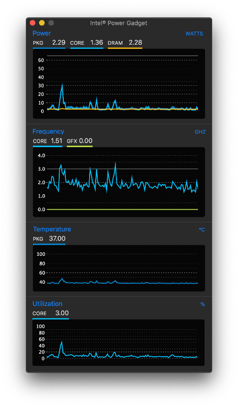 실시간으로 CPU의 전력현황이나 클럭, 온도 같은 이용 현황을 보는 프로그램입니다