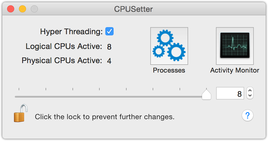 그 외로 이 프로그램을 맥북에서 조금 단순하게 쓴다면, 활성화된 코어수를 의도적으로 줄여서 배터리 전력소모나 발열을 줄이는 것이 가능합니다. 조금 더 응용한다면 각 프로세스의 CPU 최대 사용률을 줄이거나 우선순위 조절도 가능하기 때문에, 자주 사용하는 프로그램 중심으로 설정해 두면 가벼운 작업 중심으로 사용하는 배터리 모드에서 배터리 시간을 늘리는 것에 약간 도움이 됩니다.