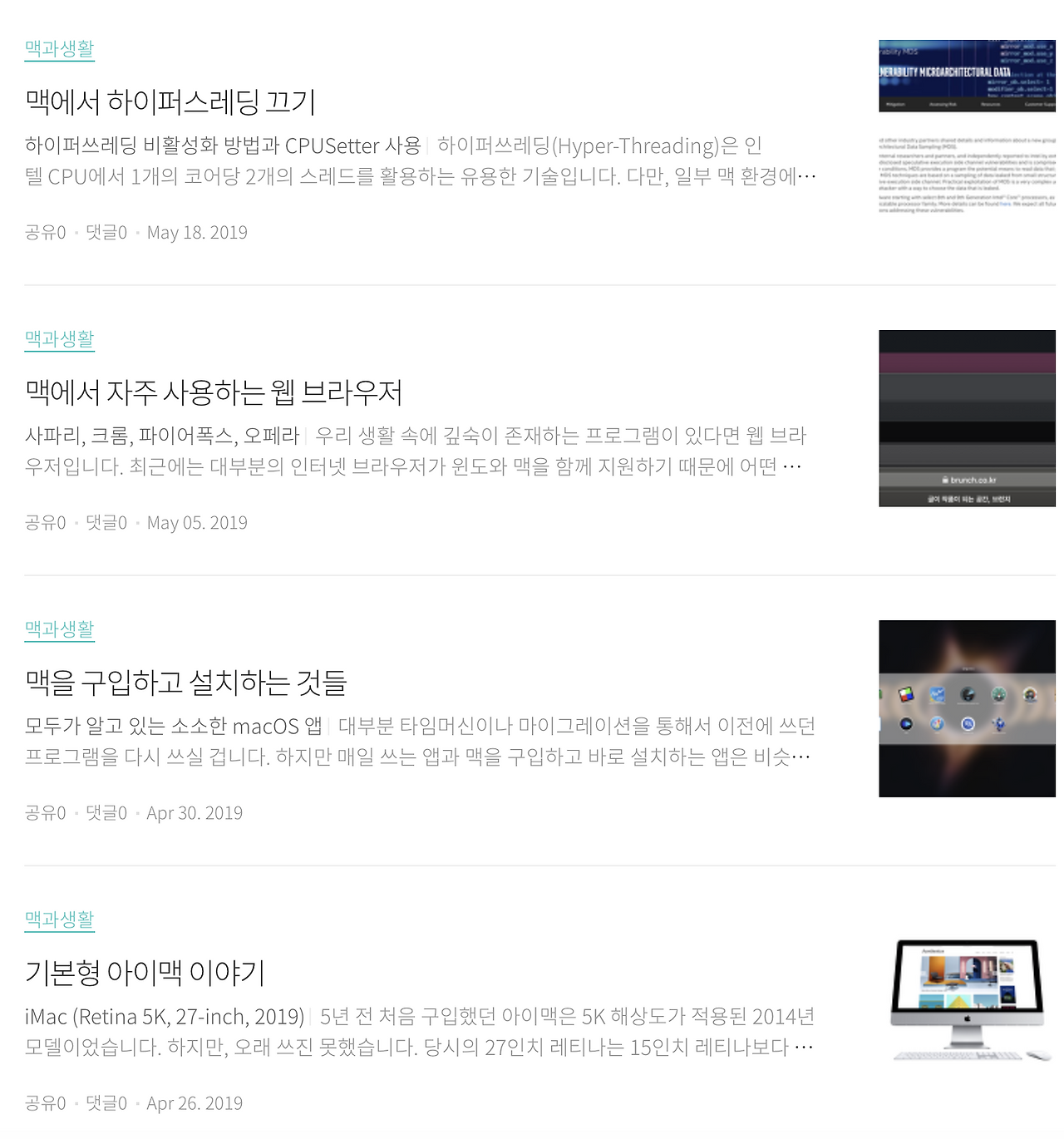 애플쪽... 맥 관련으로는 터줏대감과 네임드가 많아서 무엇을 써도 관심받기 어렵고, 영어권 자료는 워낙이나 방대하고 좋은 퀄리티의 내용이 많아서 이런 일기급의 자잘한 글은 필요 없다고 느낍니다.