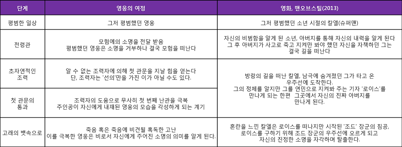 쉬운 예를 위해 오른 쪽에는 2013년 개봉된 슈퍼맨 이야기 – 영화 '맨 오브 스틸'을 해석해 보았습니다.