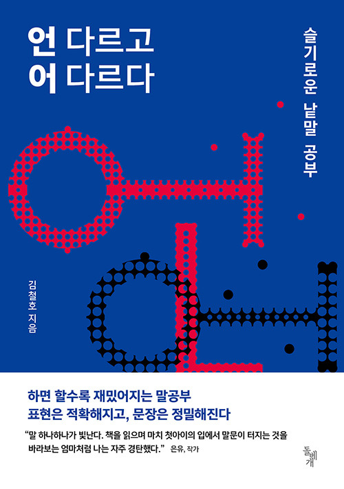 제가 여러 가지 어휘를 제시해드렸는데요. 글을 고급스럽게 쓰기 위해서 가장 필요한 기술은 다름 아닌 아주 다양한 어휘 사이의 아주 미묘한 어감의 차이를 잘 가려낼 줄 아는 능력입니다. 이런 능력을 가리켜 ‘어휘를 풍부하게 사용한다’고 하죠. 아 다르고 어 다르다는 것을 알아서 글을 읽고 쓰는 능력을 갖추었다면, 이제는 더 나아가서 언 다르고 어 다른 것을 아는 고급 한국어 사용자가 돼야겠습니다. 그 방법을 알려주는 어휘사전이 바로 김철호의 <언 다르고 어 다르다>입니다.