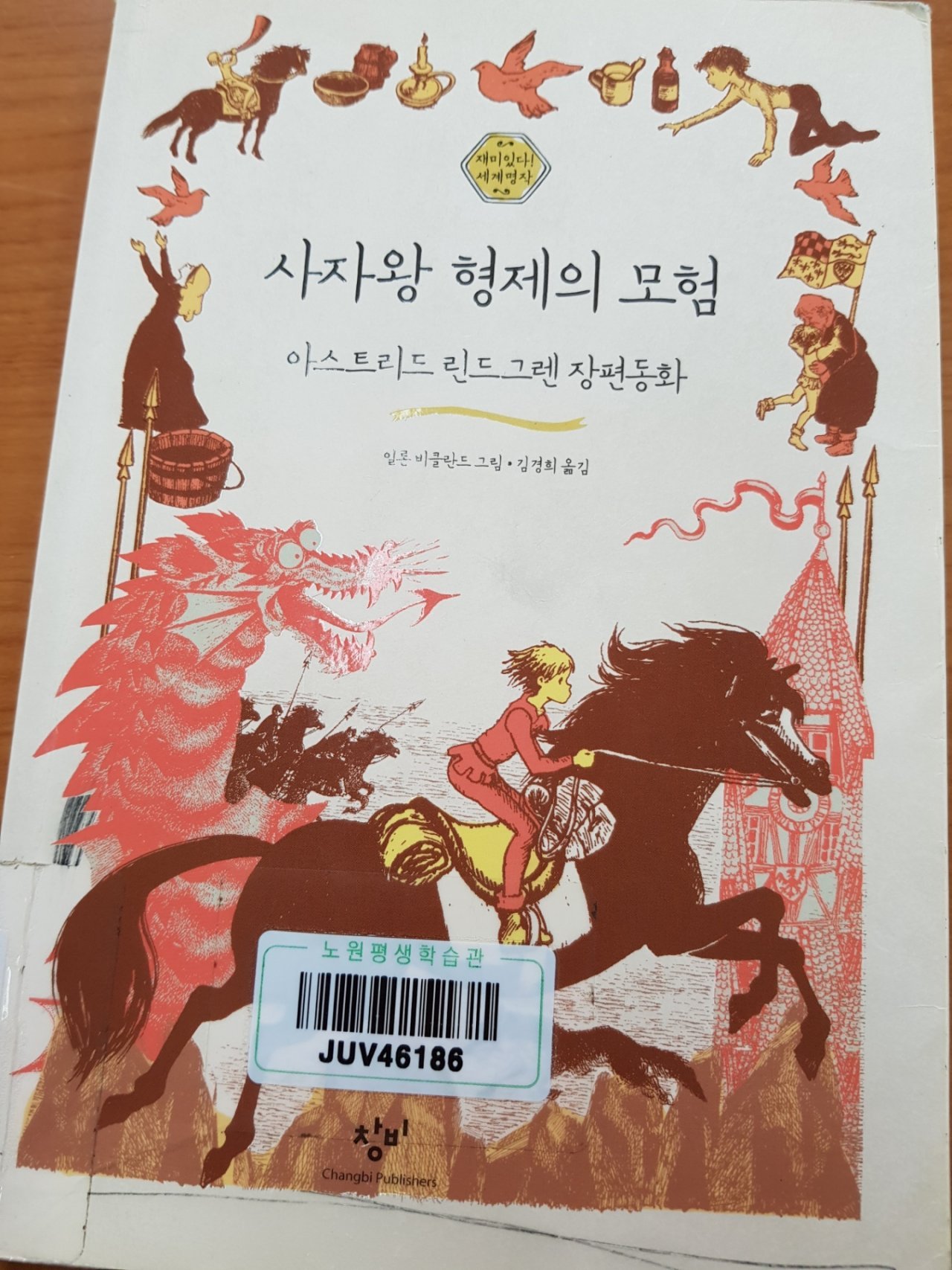 중계 평생학습관의 어린이실에 들러 여느 때처럼 건이가 읽을 책을 잔뜩 빌린 날이었다. 한쪽 구석에서 ‘아스트리드 린드그렌’이라는 익숙한 작가의 이름이 내 눈에 들어왔는데, 그녀의 대표작 ‘내 이름은 삐삐롱 스타킹’ 옆에 그녀의 또 다른 작품 ‘사자왕 형제의 모험’이라는 처음 보는 제목의 책이 나란히 꽂혀 있는 것이 보였다. 유명한 작가의 책이므로 이 책도 건이에게 읽혀 봐야겠다 생각하며 아무런 사전 지식 없이 사자왕 형제의 모험을 대출하여 왔다. 보통 나는 건이를 위해 빌려온 도서관 책들을 많이 읽지 않는다. 그런데 그날따라 그 책이 궁금하여 구석방으로 들고 가서는 읽기 시작했다. 집에는 건이와 나 밖에 없었고 건이는 거실에서 뭔가 다른 일에 열중하고 있었다.