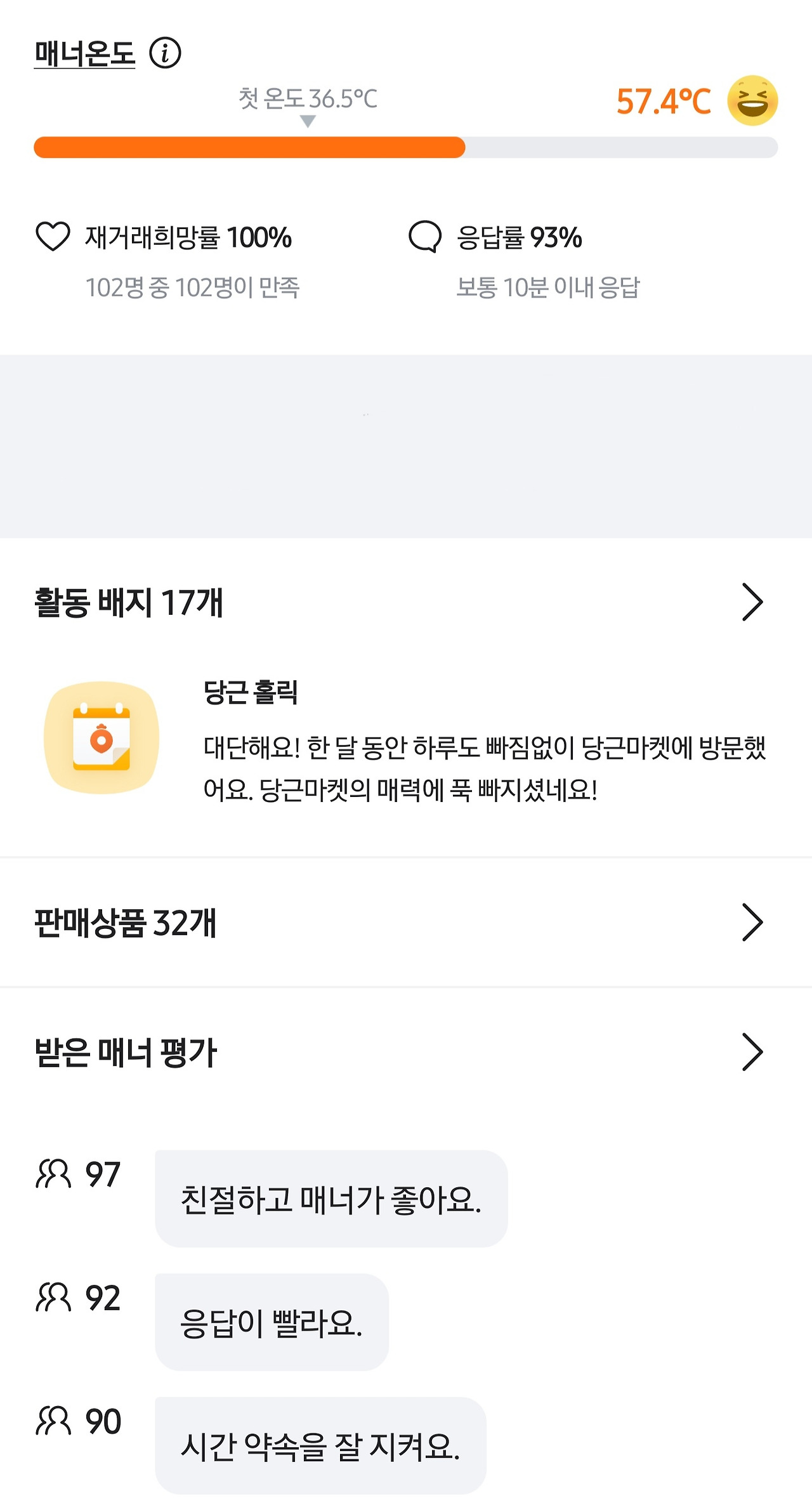 이제 알 사람 다 아는 바로 그 중고거래 앱, 당근 마켓에 나는 2019년 7월 4일에 가입했다. 매너 온도는 57.4도, 거래한 102명 중 102명이 만족! 4년째 꾸준히 활용하다 보니 나도 모르는 새에 거래건수가 100명이 넘었다. 무료 나눔을 받기도, 하기도 하며 평소에는 교류 없던 이웃들과 정을 나눈다. 뉴스 기사에 보니 사기를 당한 사례도 있다고 하는데, 운이 좋았는지 한 번도 당해본 적이 없다.
