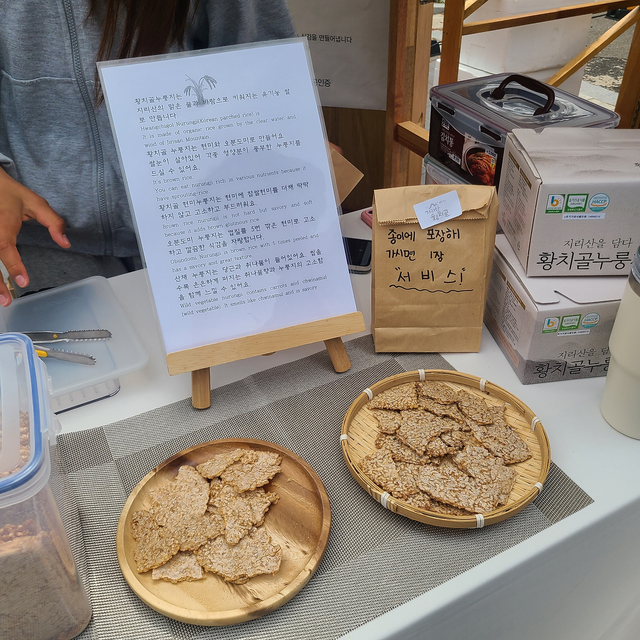 멈출 수 없는 고소함! 지리산 황치골누룽지입니다. 부안의 유기농 늘보리와 남원에서 유기농법으로 재배한 현미를 반반 섞어 만들어지는 100% 유기농 누룽지에요. 막걸리 안주로 먹으려고 샀는데 웬걸, 누룽지 좋아하는 남편이 간식으로 하루 만에 다 먹어버렸습니다. 우리 부부는 술을 좋아하는데, '왜 막걸리는 대부분 수입쌀로만 빚어질까? 단가를 맞추기가 어려워서 원재료 좋을 걸 쓰는 걸 포기하는 걸까?' 하는 의문점이 있습니다. 이 누룽지를 보고, '유기농으로 우리나라에서 재배된 보리와 현미로 식품제조가 가능할 수 있겠구나' 생각했어요. 물론 저렴하진 않지만, 이 정도 맛과 퀄리티에 충분히 부담할 수 있는 가격이라고 생각합니다.