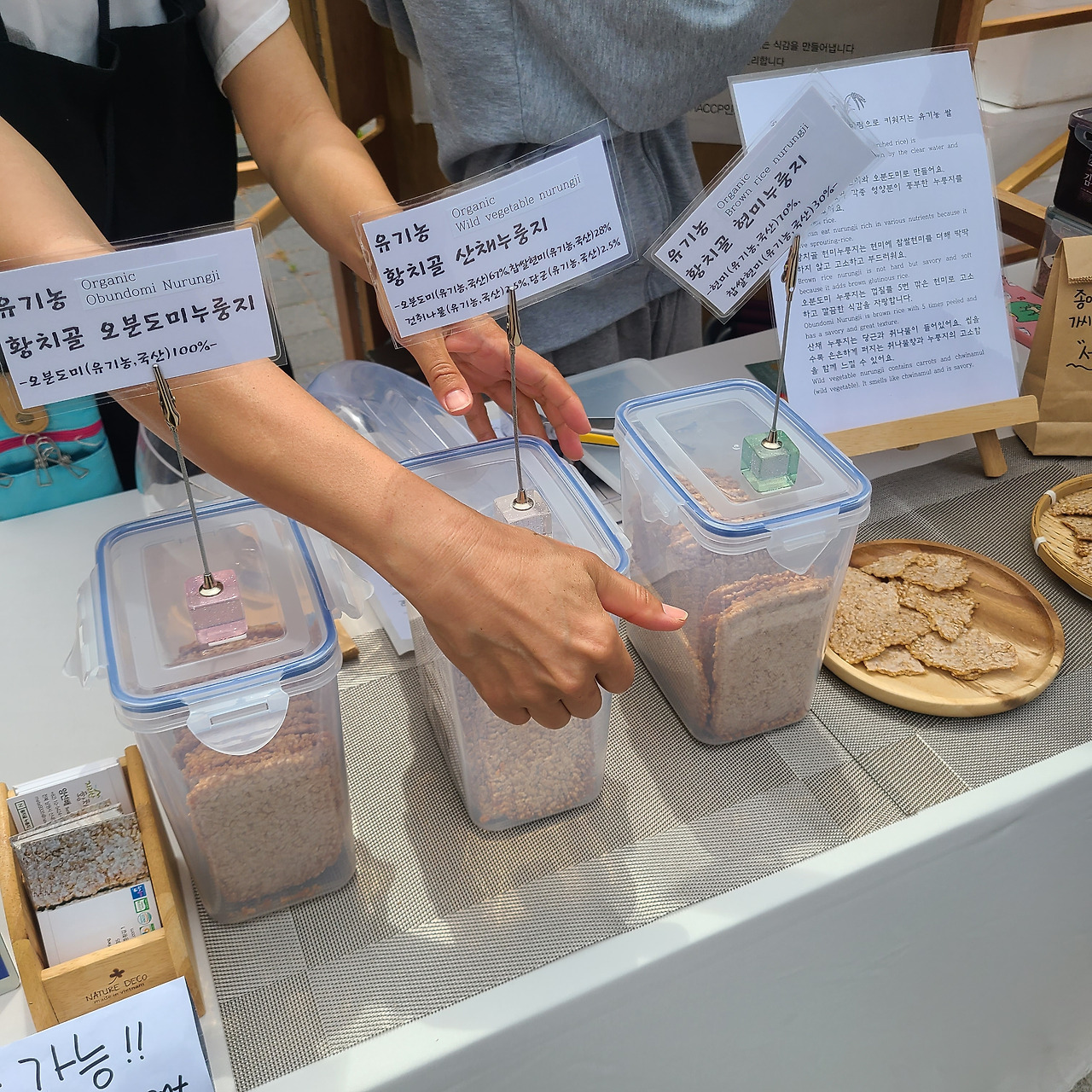 귀엽고 씩씩한 남자아이가 엄마가 하는 부스라며 데려가줘서 맛있는 천연 발효종 포카차야를 맛볼 수 있었어요. 매실청 등을 활용해 직접 만든 발사믹소스는 그 레시피가 탐날 정도로 달콤 새콤 조화로운 맛이 좋았어요. 집에 마침 마요네즈가 떨어져, 수제 비건 마요네즈 구매했습니다. 혀에 닿자마자 고소한 콩맛이 진하게 느껴지는 마요네즈! 당근에 찍어먹으면 참 잘 어울릴 것 같아요. 망원동에서 운영 중이시니, 조만간 가서 다양한 메뉴들 먹어보고 싶네요.