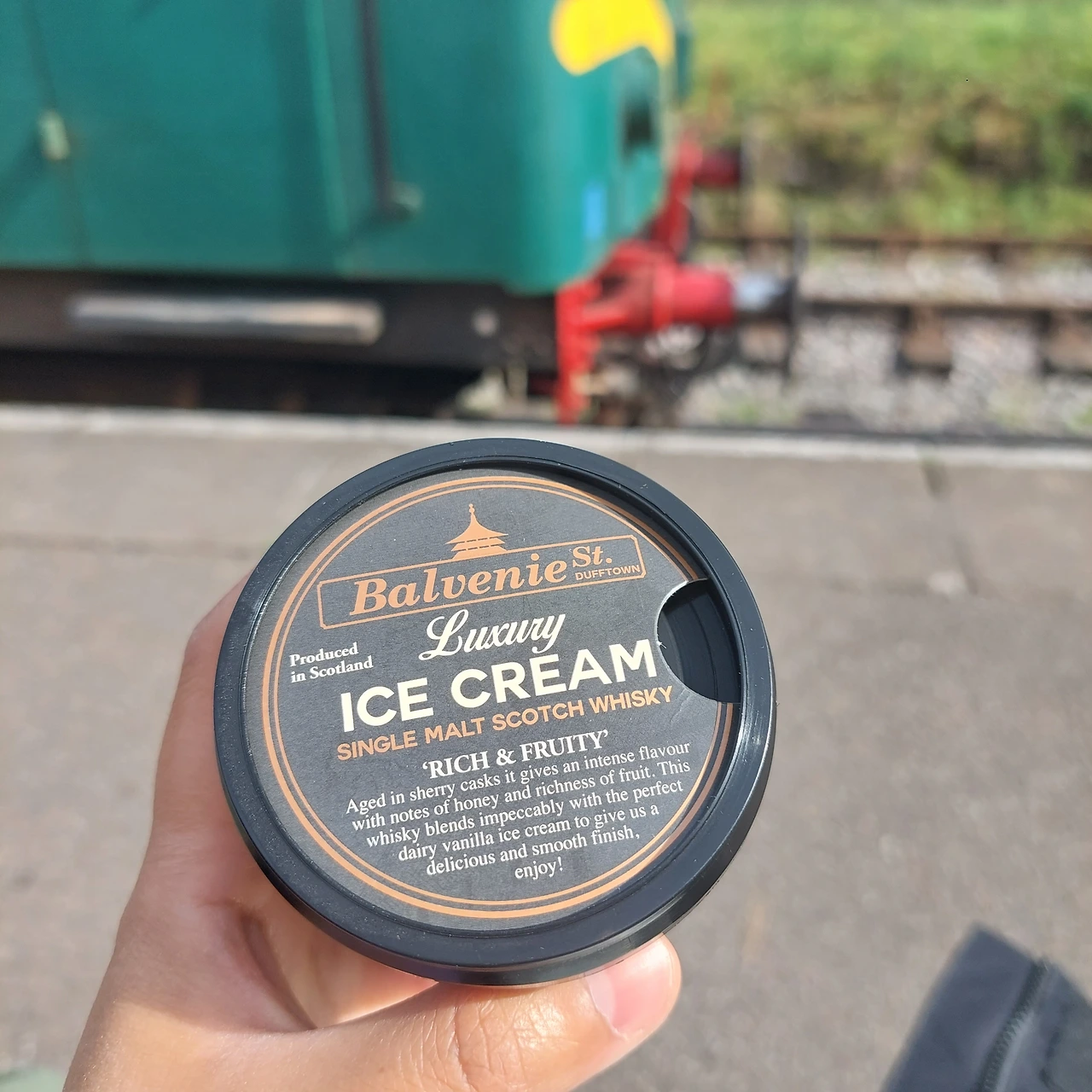 돌발 상황으로 다른 경로를 택한 덕분에 더프타운(Dufftown)에서 역사가 오래된 완행열차를 타볼 기회가 생긴 거다. 일단 편도 티켓을 끊고 무거운 백팩을 역무원에게 맡겨두었다. 역사에 위치한 카페에 갔는데 위스키 아이스크림이 있어 하나 사 먹었다. 바닐라 아이스크림에서 느껴지는 위스키의 풍미! 따스한 햇살과 사르르 녹는 시원한 아이스크림. 걱정도 함께 순식간에 녹아내렸다.