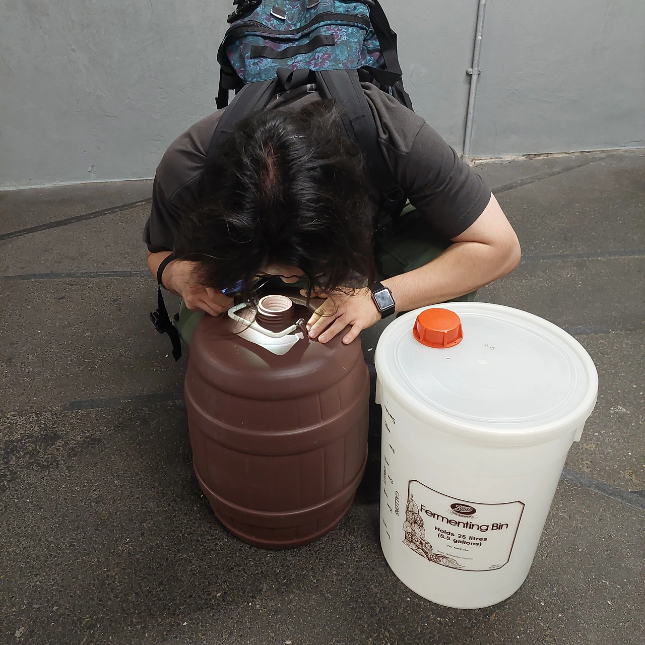 활발한 이웃 나눔 덕분에 우리도 덕을 봤다. 이웃 중 한 명이 홈브루잉을 하다가 포기했는지 발효통을 나눔 했는데, 마침 래디카가 우리 생각이 나서 받아다 준거다. 위의 사진은 나눔 받은 맥주 숙성 발효통을 들고 집에 가는 지하철에서 통 내부를 살피고 있는 모습이다. 무료 나눔은 참 좋은데, 자꾸만 늘어나는 짐을 우짤꼬...?