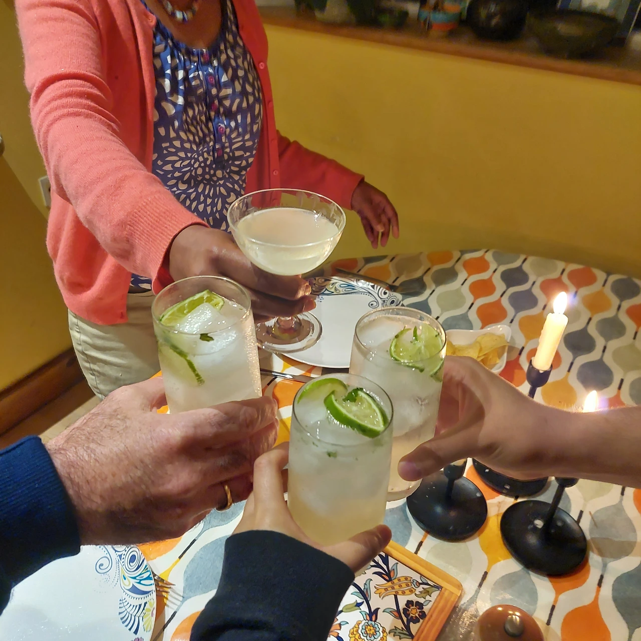 칵테일 클래스 수강생으로 알게 된 인연, 래디카네 집에 초대받아서 다녀왔다. 저녁 7시, 아이 둘을 다 독립시키고 은퇴할 법도 한데, 래디카는 저녁 시간임에도 화상 회의 중이어서, 남편 스티브가 맞아주었다. 래디카 업무가 끝날 때까지 스티브가 선물로 받은 스페인의 내추럴사이더를 나눠마셨다. 우리가 사이다(cider; 사과로 만든 발효주)에 관심이 많은 걸 기억하고 나눠주다니 감동이다.