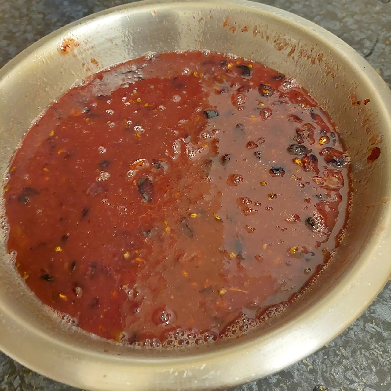 채반으로 껍질과 씨앗을 걸러내고 나니 약 1.5리터 정도 와인이 나왔다. 여전히 발효가 진행 중이기 때문에 뚜껑은 꽉 닫으면 안 되고, 이산화탄소가 빠져나갈 수 있도록 느슨하게 결합해 둔다.