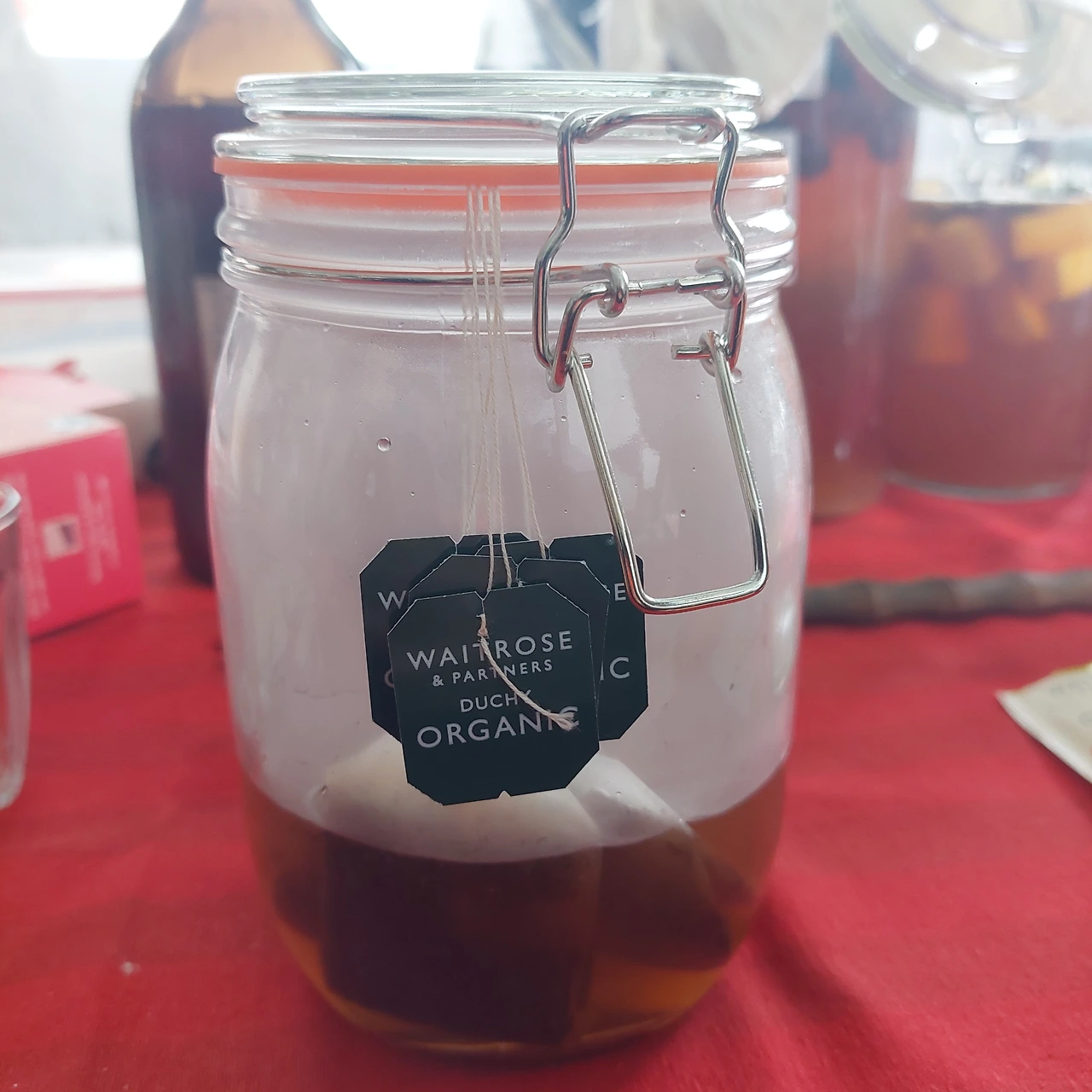 만들기 전에 강사분이 만든 콤부차들을 거의 20종을 시음해 보았다. 홍차뿐 아니라 녹차, 백차, 보이차, 블렌드 티 등 다양하게 배합해 만든 콤부차들이 각기 다른 맛을 내는 게 신기했다. 기본 콤부차에 맛을 내기 위해 과일이나 허브를 첨가하기도 하는데, 파인애플과 민트 조합, 블루베리가 입맛에 잘 맞았다. 세상에 많고 많은 과일과 허브들이 있으니 무한정 새로운 콤부차를 만들 수 있다. 매번 배합을 달리해 제조해 보고 맛보는 과정이 기대가 된다.