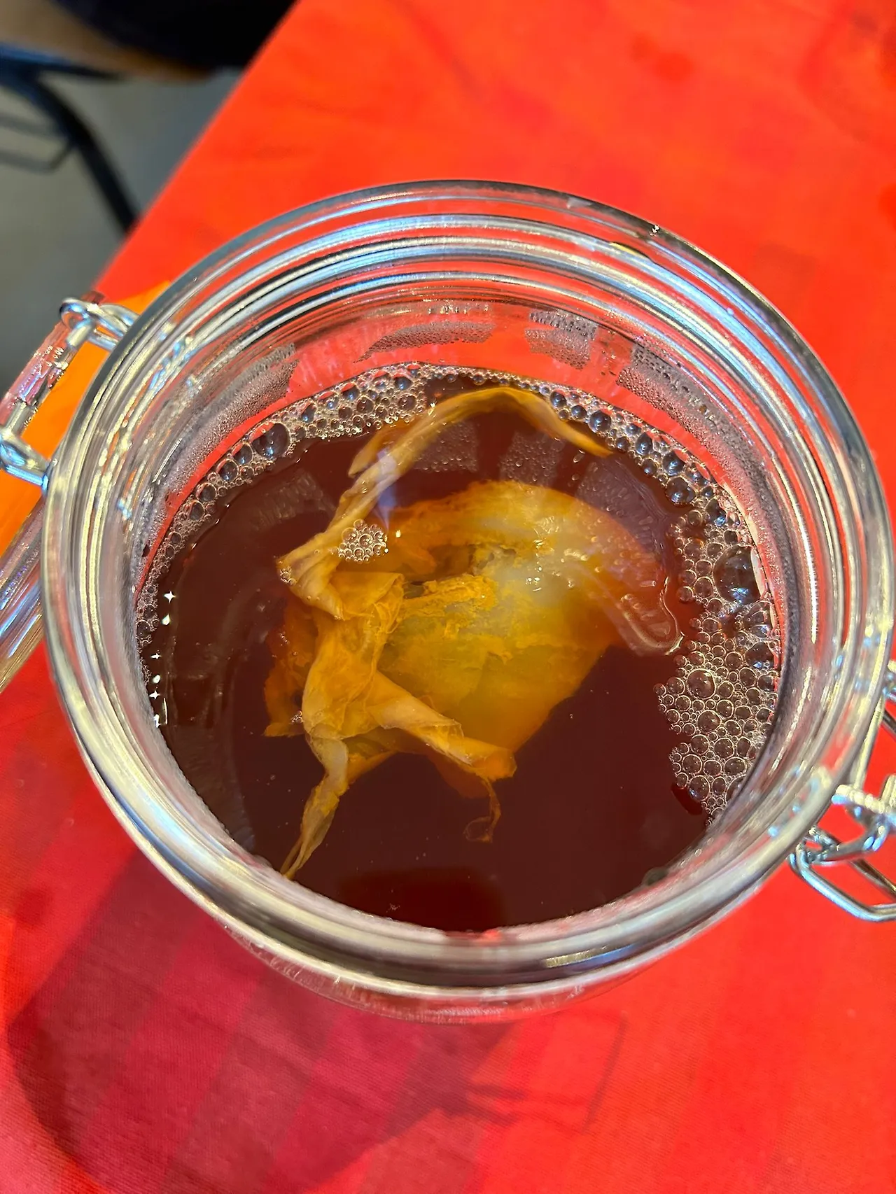 콤부차 만드는 법을 배웠다. 방법은 어렵지 않지만, 콤부차의 필수 기본 재료인 '스코비(SCOBY)'를 구하기가 어렵다. 콤부차를 만드는 아는 지인이 있다면 나눔 받거나, 일부 온라인 판매자에게 구매해서 배송을 받아야 한다. 배송 과정에서 변질되거나 분실될 우려가 되어 차라리 클래스에서 스코비를 받아오기로 했다.