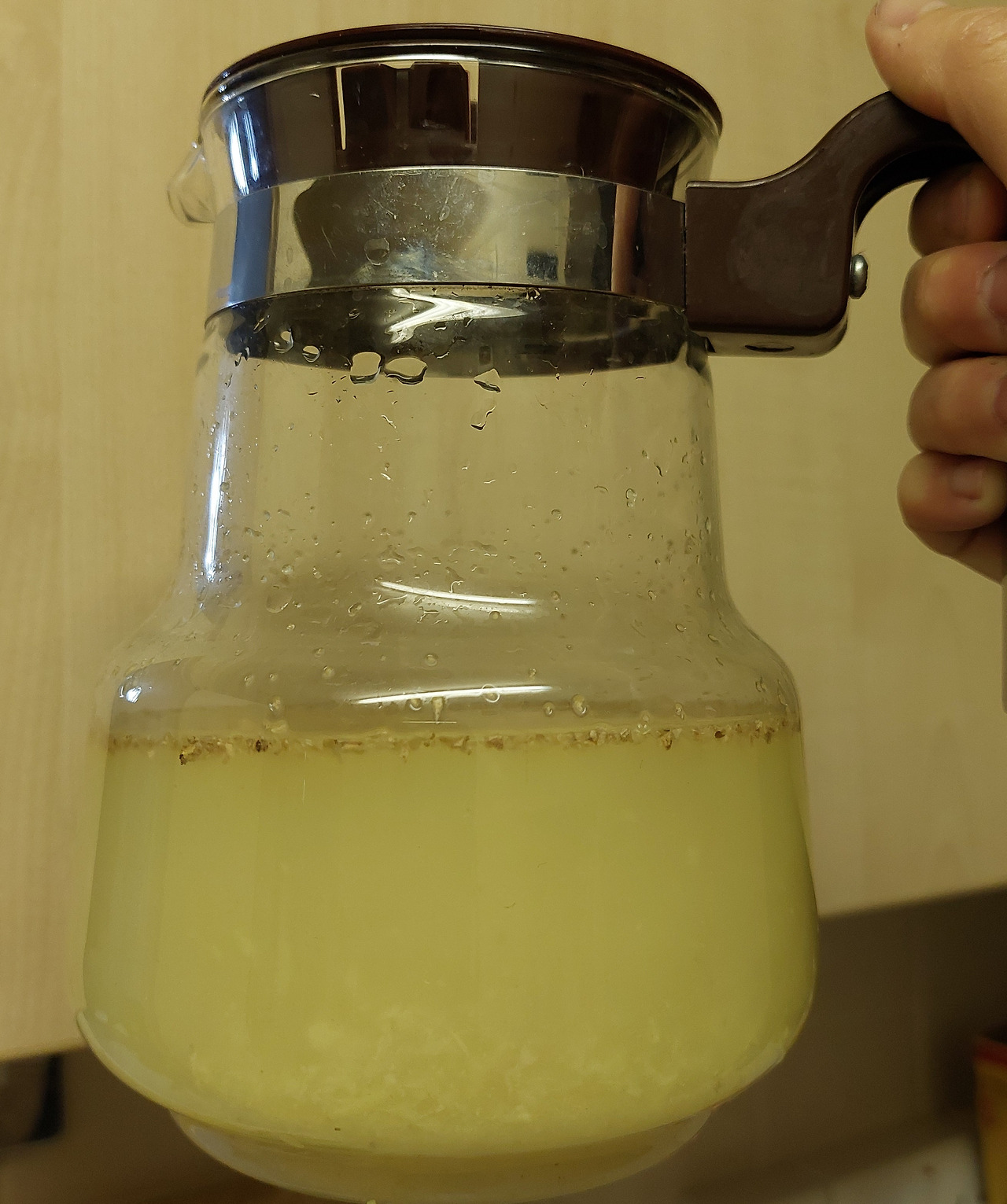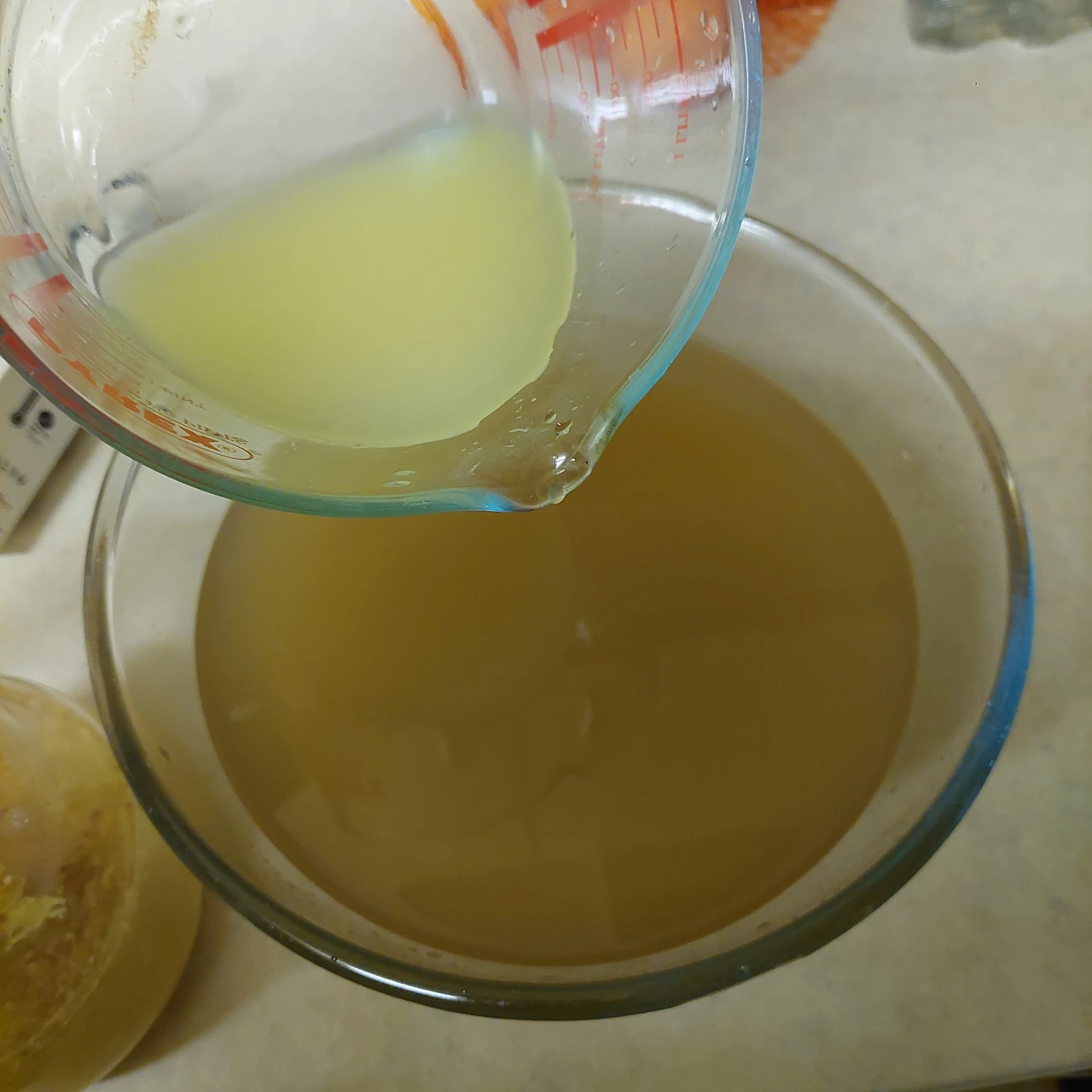 끓인 생강물을 상온이 되도록 식혀준 뒤 생강을 걸러내고 진저버그를 125ml 넣어준다. 진저버그가 활동성이 부족하다고 느낀다면 좀 더 넣어줘도 된다.