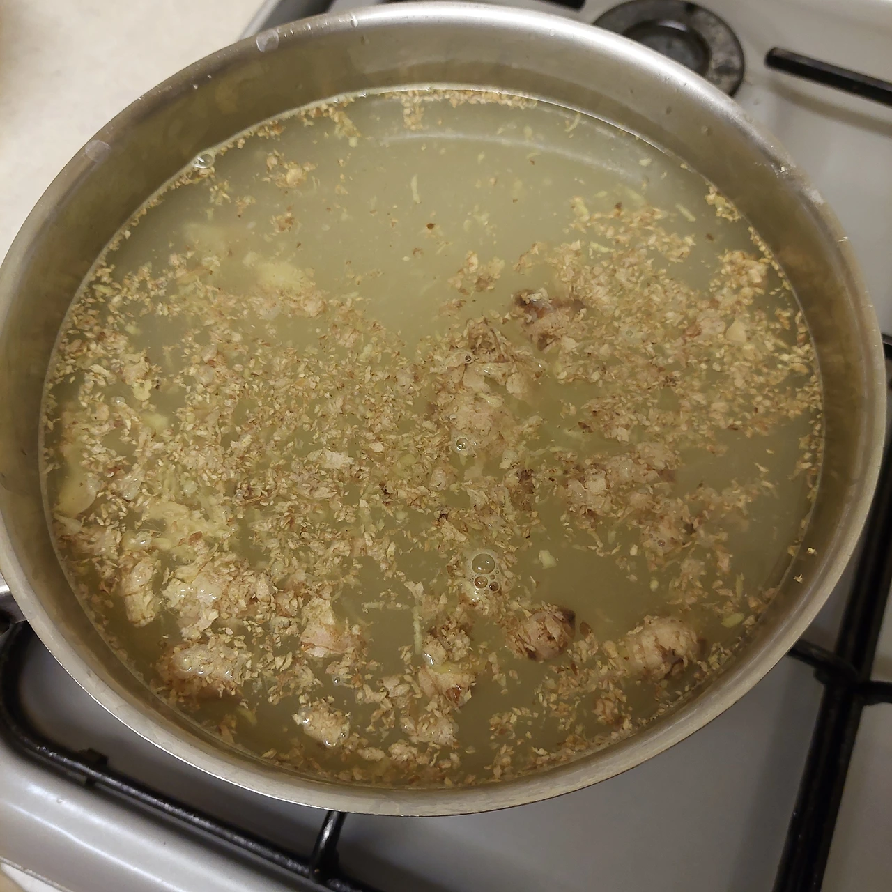 중 약불에 생강을 넣고 은근하게 20분간 끓인다. 레몬이 있다면 이 단계에 즙을 함께 넣고 끓여주면 되는데 나는 생략했다.