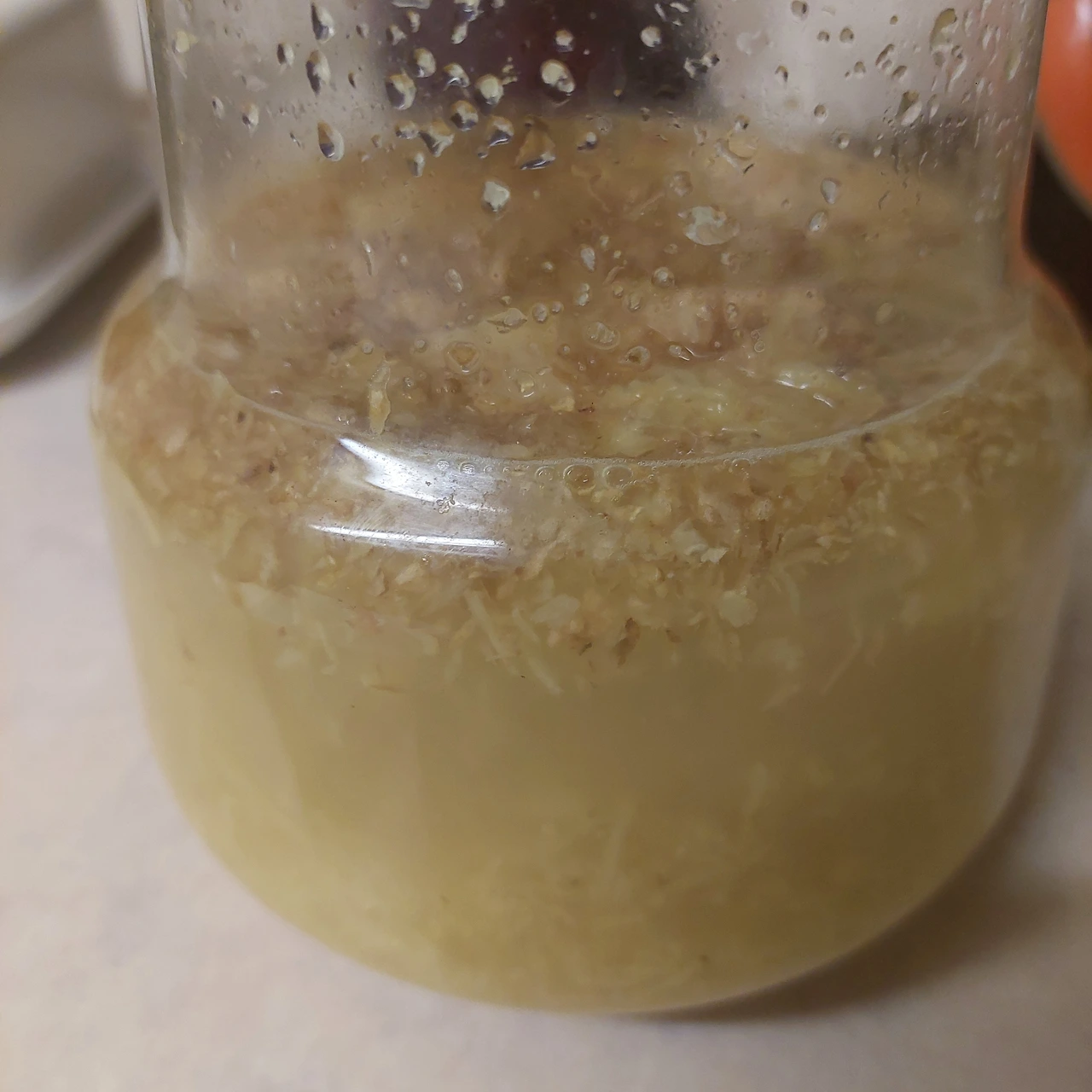 생강은 채 썰어서 쓰기도 하는데, 표면적이 넓으면 더 발효에 도움이 될 것 같아 갈아서 사용했다.생강은 유기농으로 구매해 씻지 않고 껍질도 까지 않아야 그 껍질에 붙은 효모들이 활발하게 작용할 수 있다.