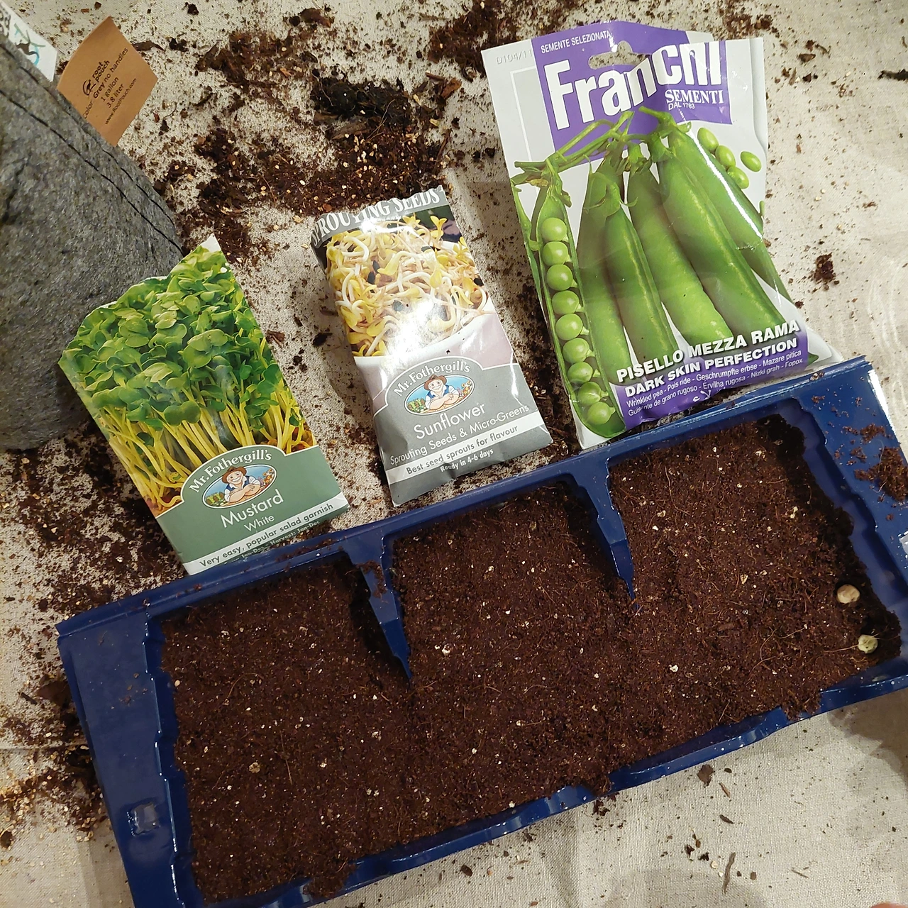 겨자와 해바라기 완두콩은 모두 잘 자라주었다. 다만 완두콩을 너무 욕심내어 빽빽이 심었더니 밑에 눌린 씨앗은 발아를 하지 못했다. 씨앗 자체도 큼직한 편이다 보니 어느 정도 씨앗끼리 거리를 두고 심어주는 게 중요하다는 걸 배웠다.