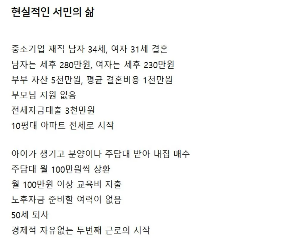 내용을 보니 정말 온라인에서 흔히 말하는 '평균 올려치기'가 없는 진짜 찐 리얼 현실적인 경제상황이 쓰여 있었다.