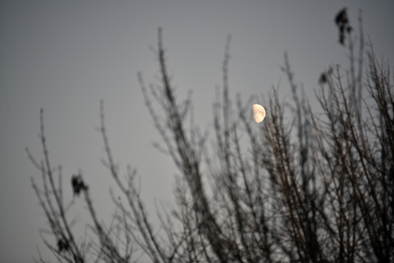 어스름한 저녁 나무 끝에 걸린 반달을 만났습니다.