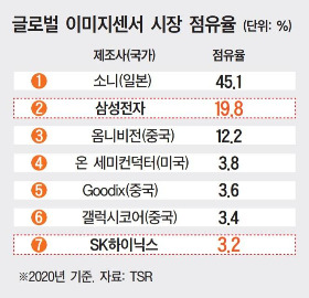 당사는 스마트폰의 카메라 모듈에서 빛을 전기적 신호로 바꿔주는 반도체 제품(IC)인 CIS를 판매하고 있으나 일본의 소니, 삼성전자와 비교하여 아직 그 시장 점유율은 3%대로 매우 미미한 수준이다.