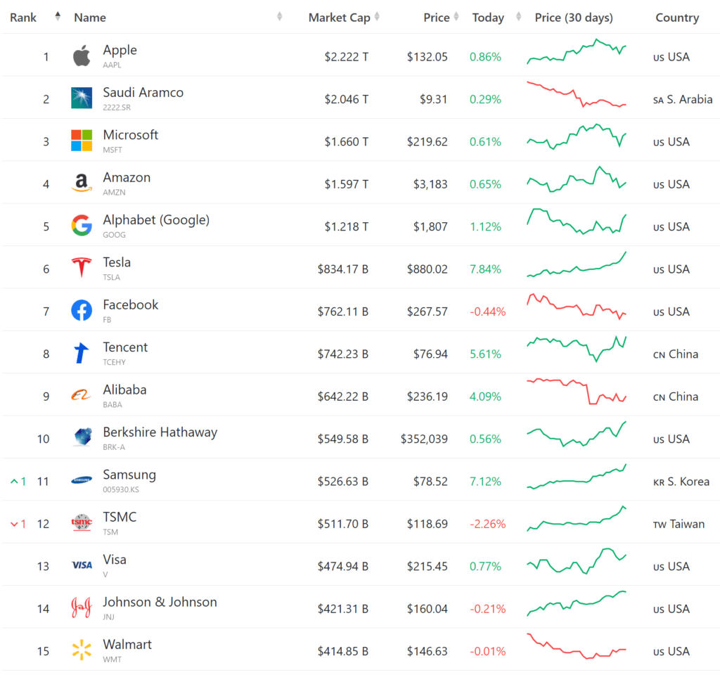 애플(Nasdaq: AAPL)은 7월 23일 기준 시가 총액은 $2.48T(한화 약 2900조 원)으로 전 세계 1위이며, 이 숫자는 2020년 이탈리아 GDP인 $2.0T(자료: UN)을 가볍게 넘어서는 규모이다.