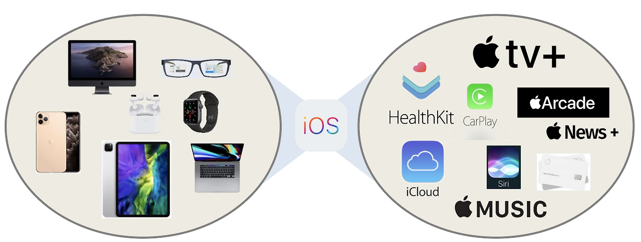 이 거대한 사과 제국은 iPhone, iPad, Apple Watch 등 새로운 폼팩터의 제품을 출시하며 자체 OS을 바탕으로 독자 생태계/플랫폼을 구축하며 성장할 수 있었고, 현재는 콘텐츠/자동차 부문까지로 사업을 더욱 확장하려고 한다.